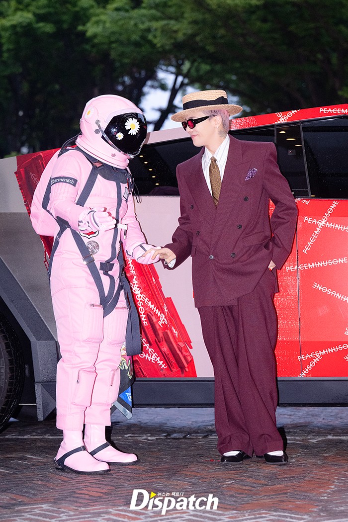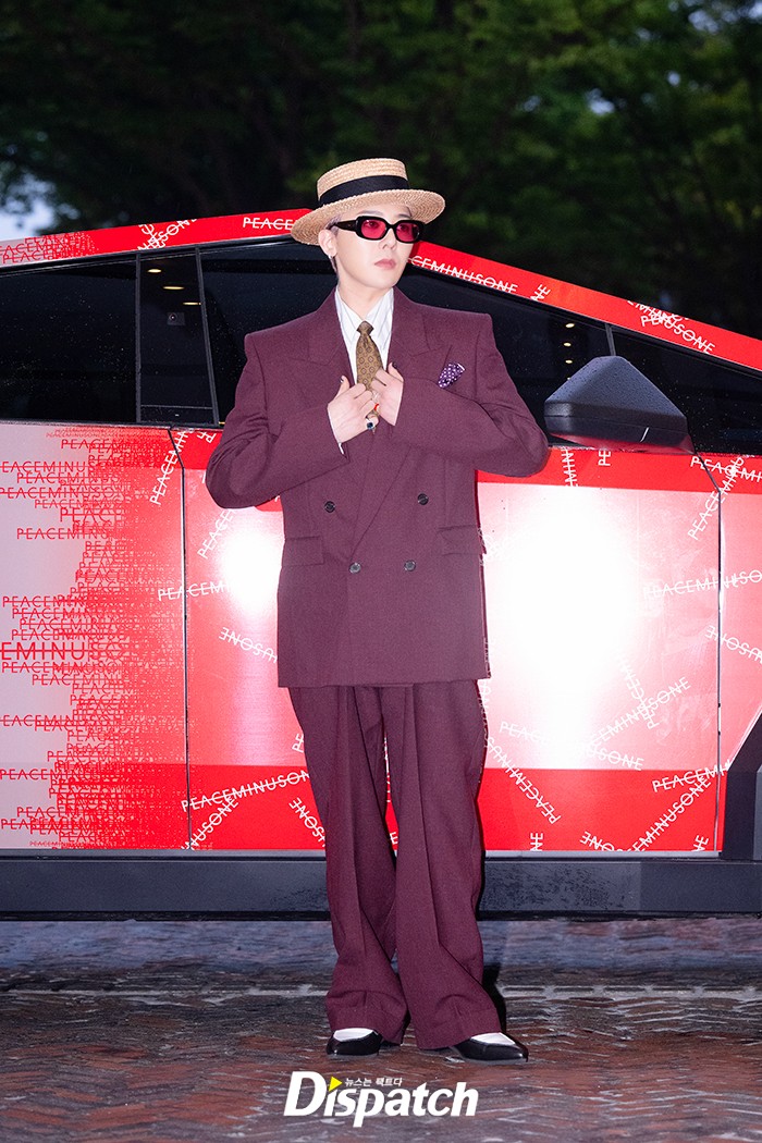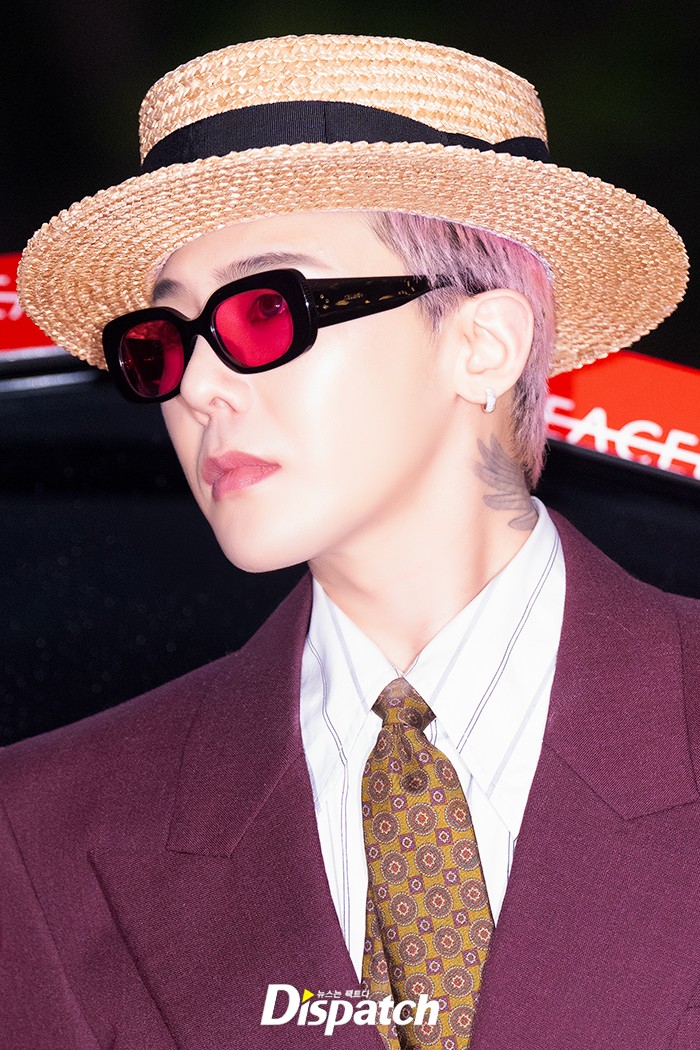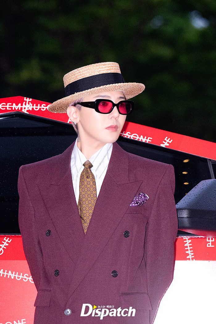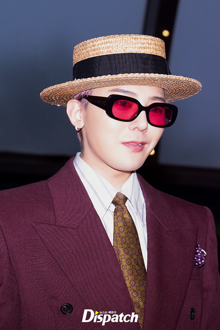 지드래곤은 버건디 수트로 센스 넘치는 패션을 연출했다. 훈훈한 비주얼이 돋보였다.