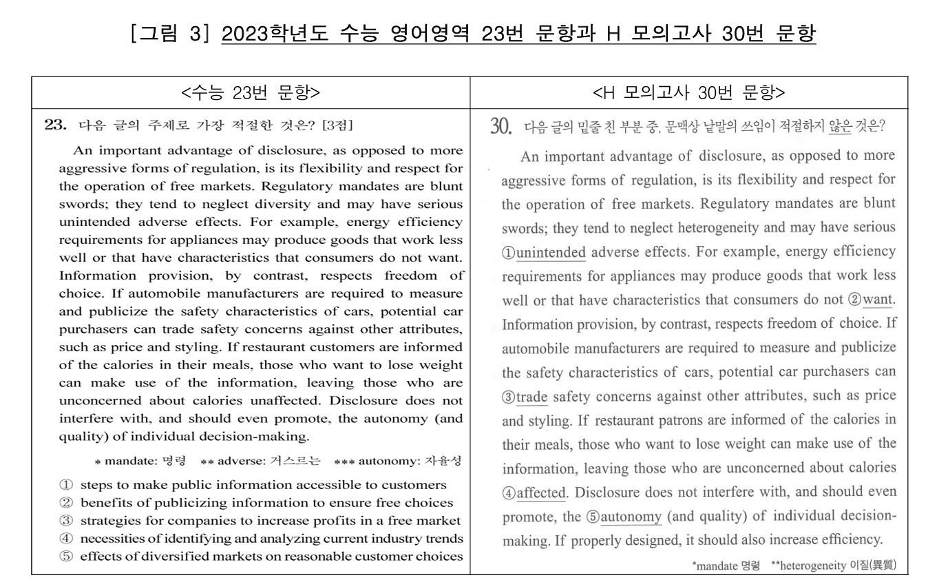 애초 평가원이 제 역할을 했다면 피할 수 있는 일이었다. 더욱이 2022학년도 6월 모평과 사설 모의고사 문항 지문이 일치하는 사태가 벌어진 직후였다. 전년처럼 조정식 등 유명강사 교재를 확보, 중복 여부를 확인할 필요가 있었다.
