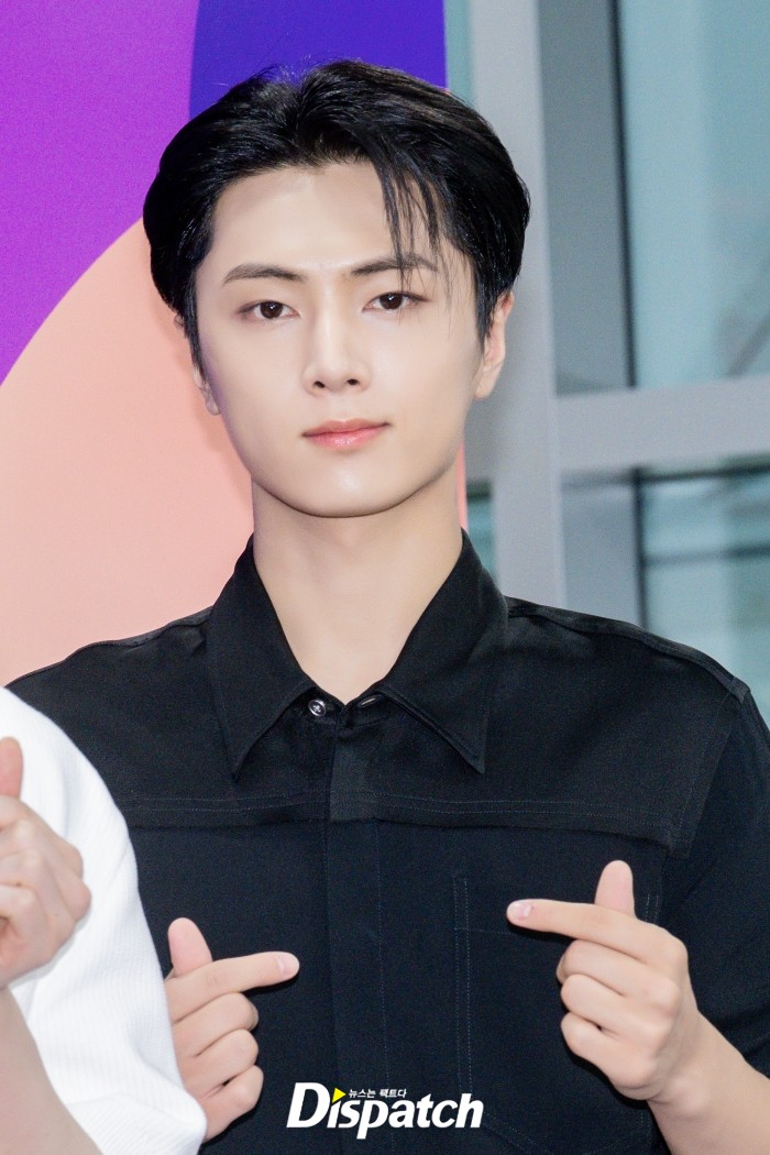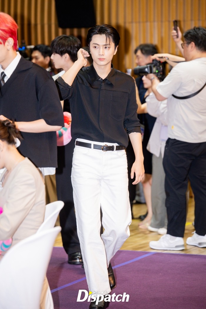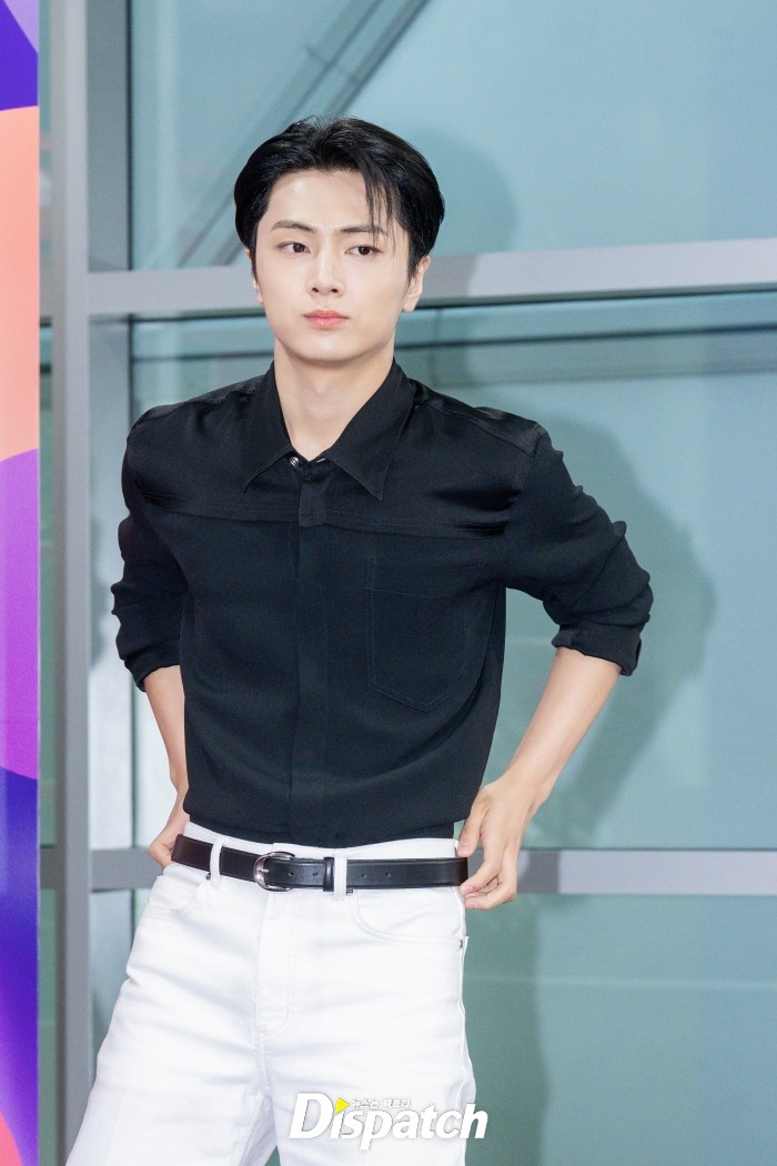 '엔하이픈' 제이는 블랙 셔츠와 화이트 팬츠로 멋을 냈다. 잘생긴 비주얼이 돋보였다.