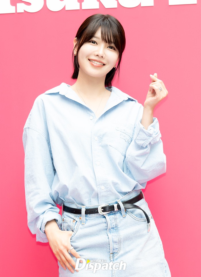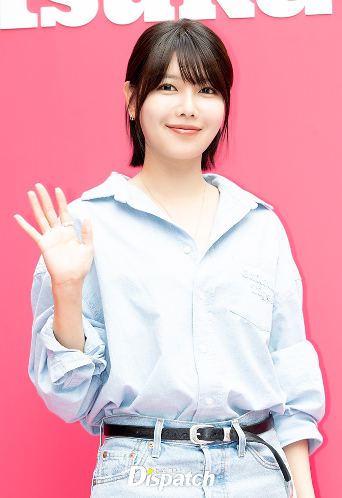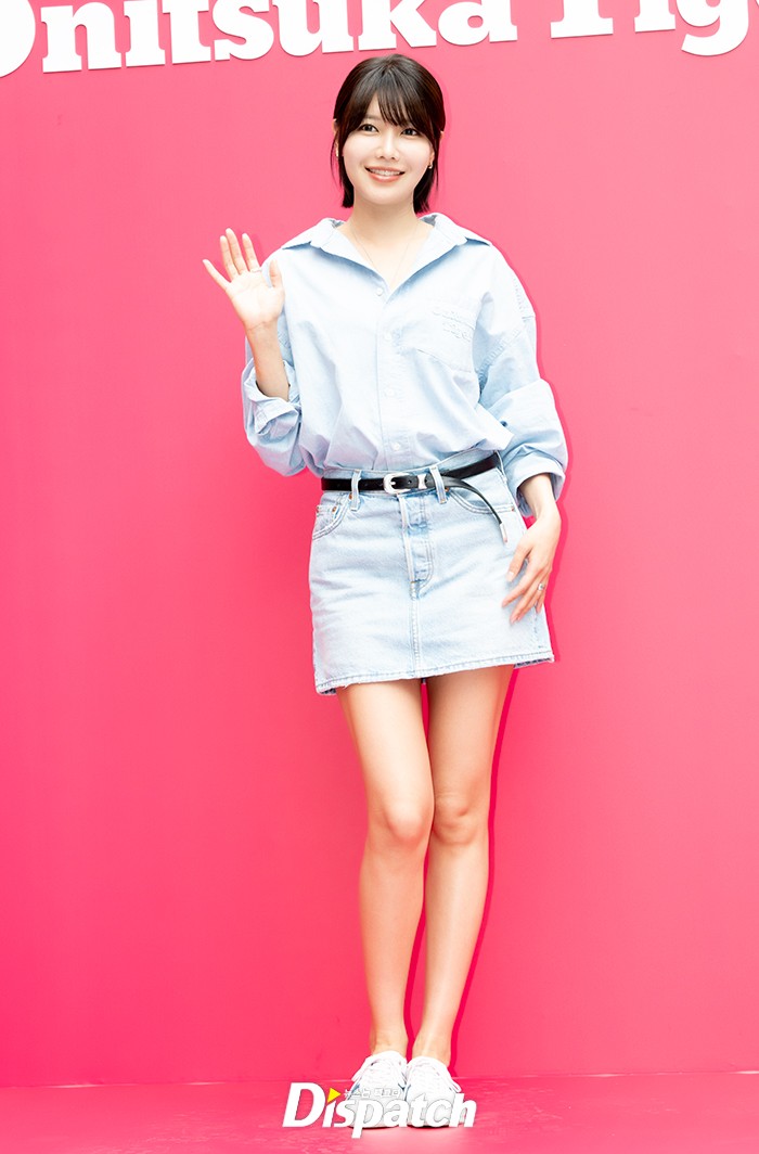 수영은 셔츠와 진스커트로 맵시를 뽐냈다. 싱그러운 미소가 돋보였다.