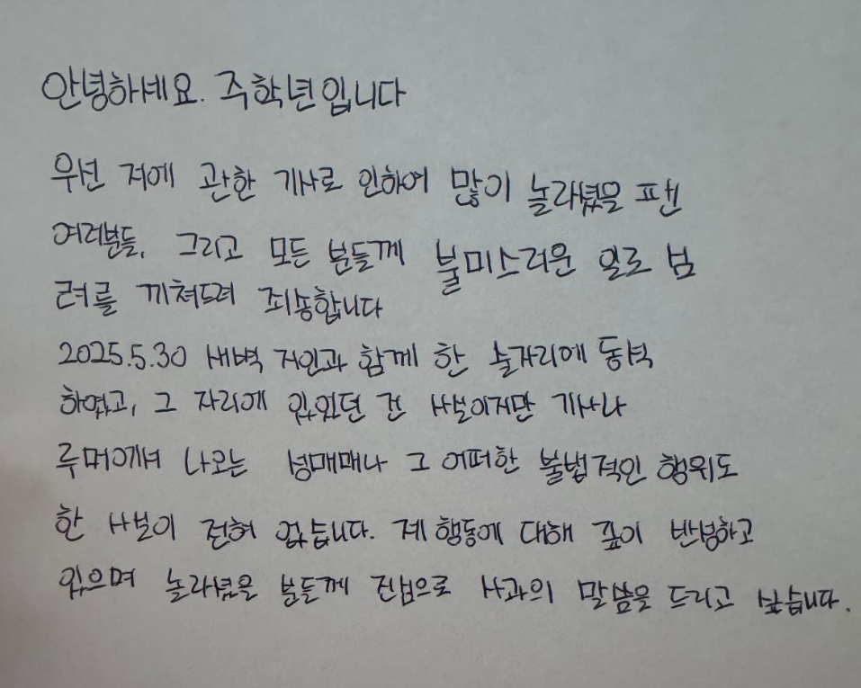 저는 지금까지 진실이 밝혀질 거라 믿으며 묵묵히 참아왔습니다. 하지만 하지도 않은 일을 빌미로 사람을 매장시키려는 시도 앞에서, 더 이상 침묵할 수 없다는 걸 느꼈습니다.