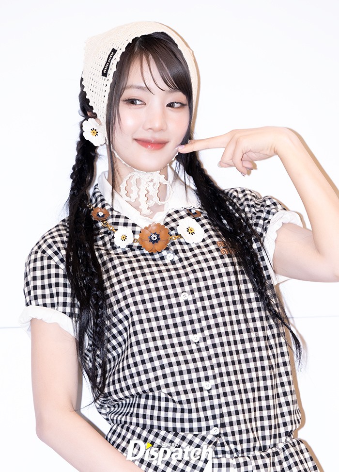 민니는 체크무늬 원피스로 맵시를 뽐냈다. 아름다운 미소로 시선을 사로잡았다.