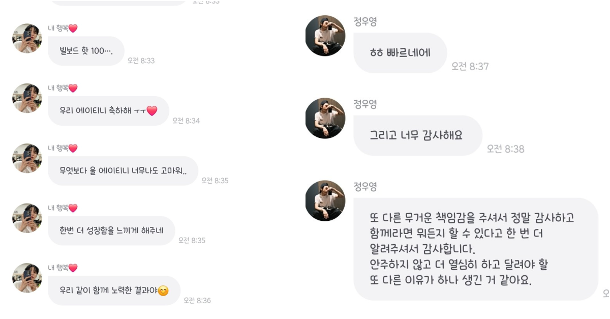 우영은 열정을 불태웠다. "(에이티니와) 함께면 뭐든지 할 수 있다고 한 번 더 알려주셔서 감사하다. 안주하지 않고 더 열심히 달려야 할 이유가 하나 더 생긴 것 같다"고 전했다.