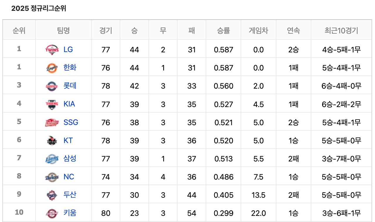 올해 KBO 리그는 역대급 혼전이다. 매일같이 순위가 바뀔 정도로 치열하다. 1위부터 8위까지 엎치락 뒤치락을 거듭하고 있다. 6위 'kt'와 1위 'LG'는 단 5게임 차.