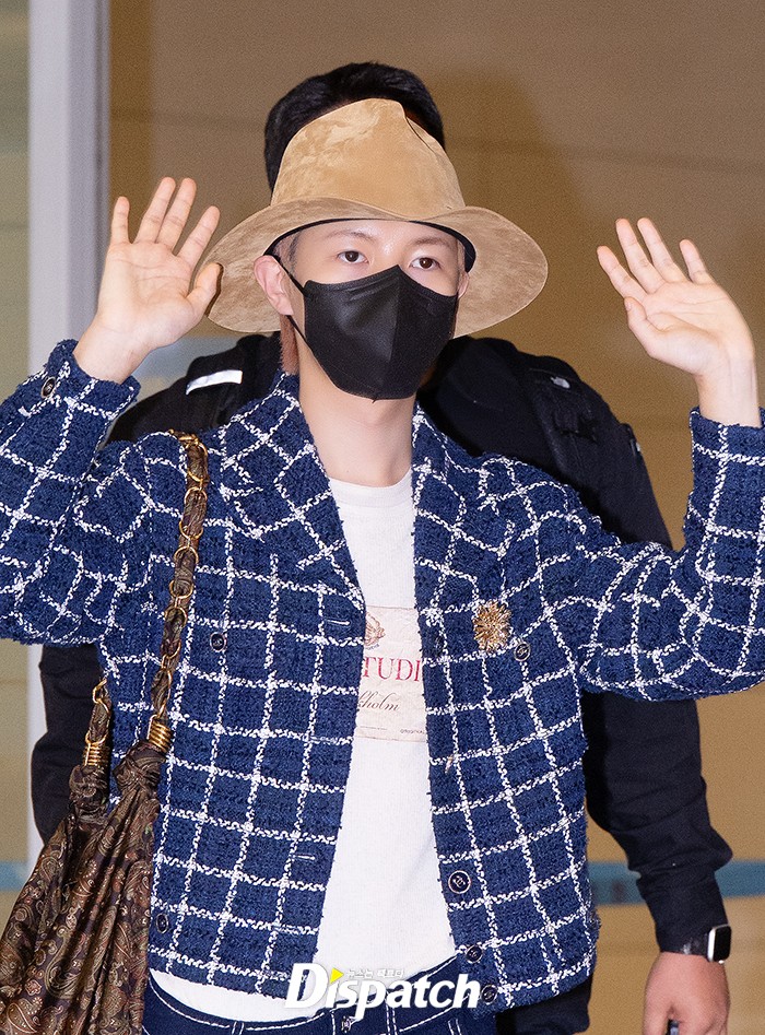 런쥔은 데님 팬츠에 네이비 재킷으로 개성만점 공항패션을 연출했다. 훈훈한 비주얼이 돋보였다.