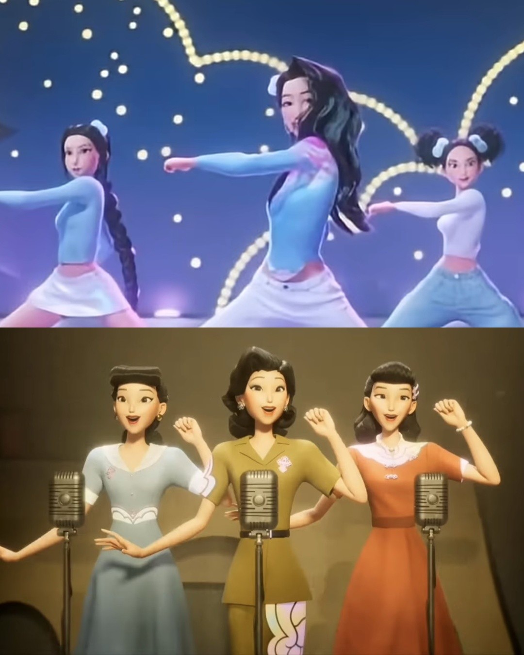 '케데헌'의 가장 큰 매력은 완벽한 고증에 있다. K팝을 단순하게 소비하지 않았다. 극 중 한국 음악사 속 전설적인 걸그룹들을 선대 퇴마사로 재탄생시켰다.