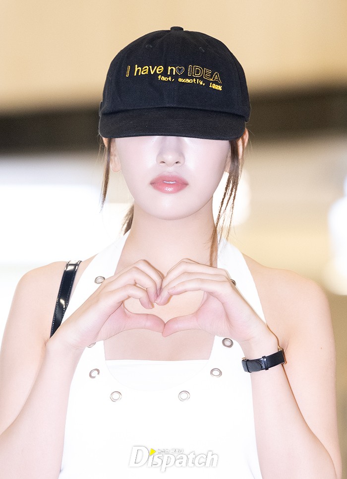 안유진은 블랙 앤 화이트 의상과 모자로 공항패션을 완성했다. 건강미 넘치는 모습으로 출국장을 나섰다.