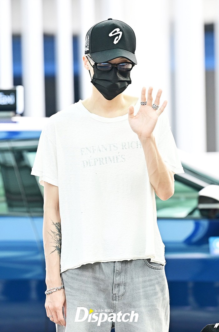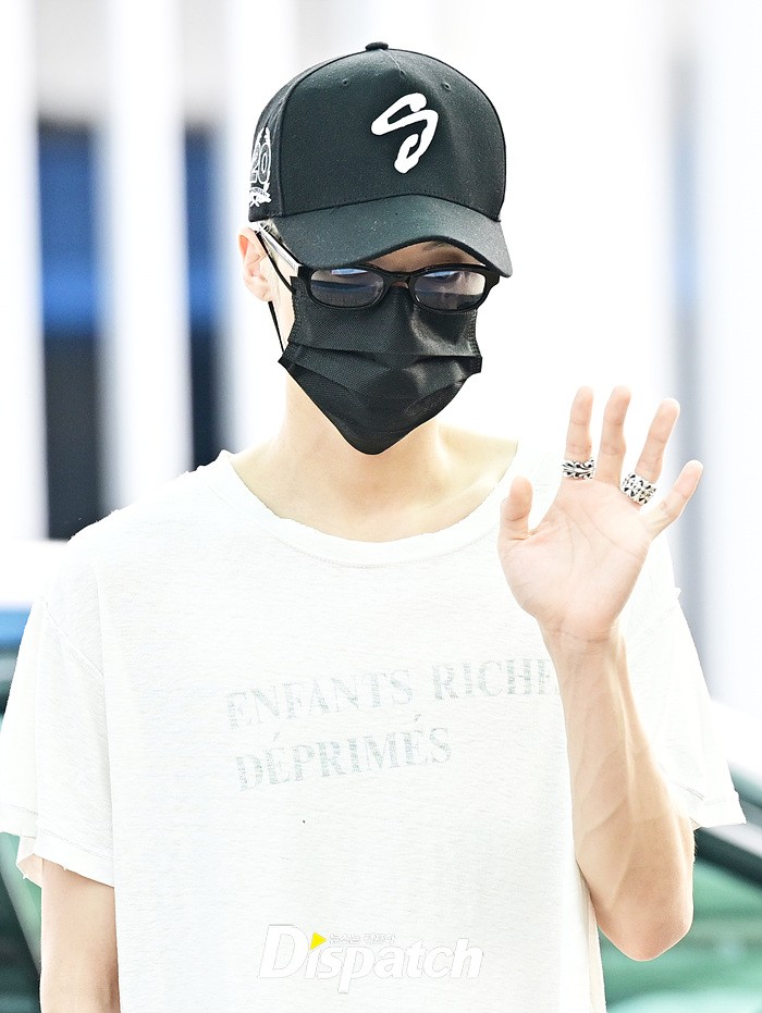 우영은 모자와 마스크로 얼굴을 감쌌다. 이른 아침에도 스윗한 인사로 팬들에게 감사의 마음을 전했다.