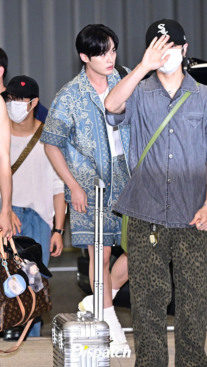 리노는 조각같은 비주얼로 눈길을 끌었다. 공항에 모인 팬들을 위해 손인사로 화답했다.