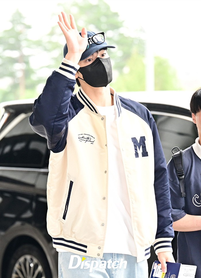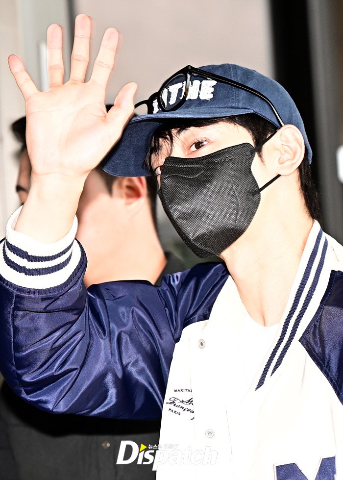 차은우는 군입대 전 마지막으로 공식석상에 나섰다. 공항에 모인 팬들을 위해 환한 손인사로 화답했다.