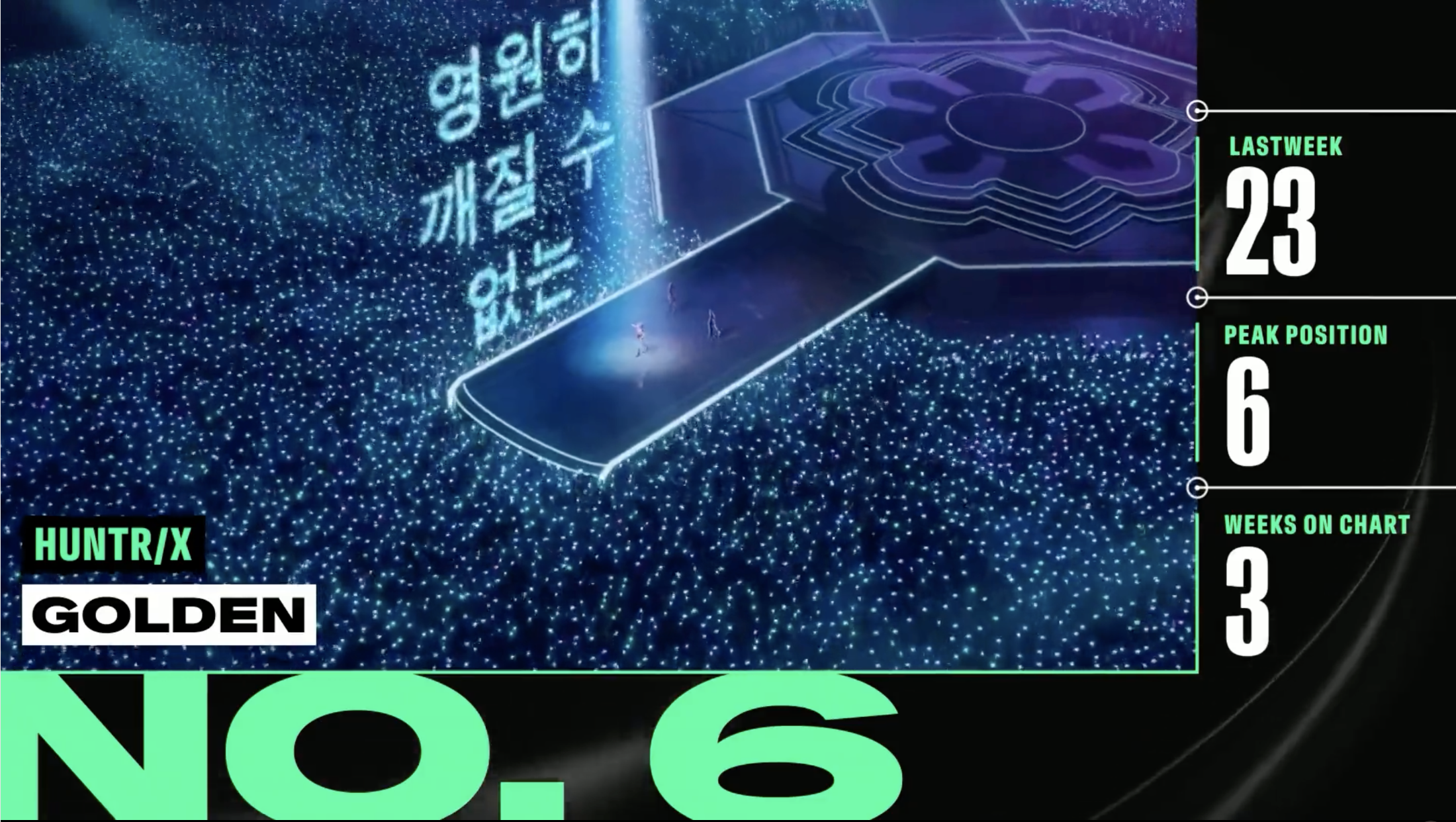 '골든'은 빌보드 '글로벌 200', '글로벌(미국제외)' 차트에서 모두 1위를 차지했다. 가상 아티스트가 해당 차트 1위를 차지한 것은 이번이 처음이다.