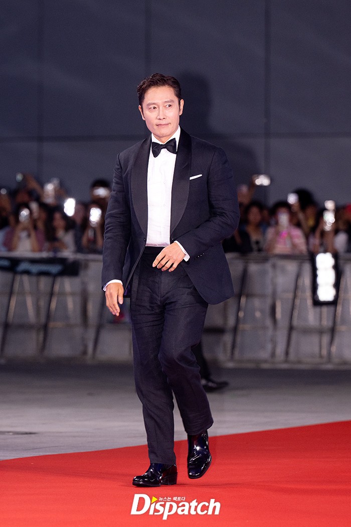 이병헌은 블랙 수트로 댄디한 매력을 뽐냈다. 조각같은 비주얼이 돋보였다.