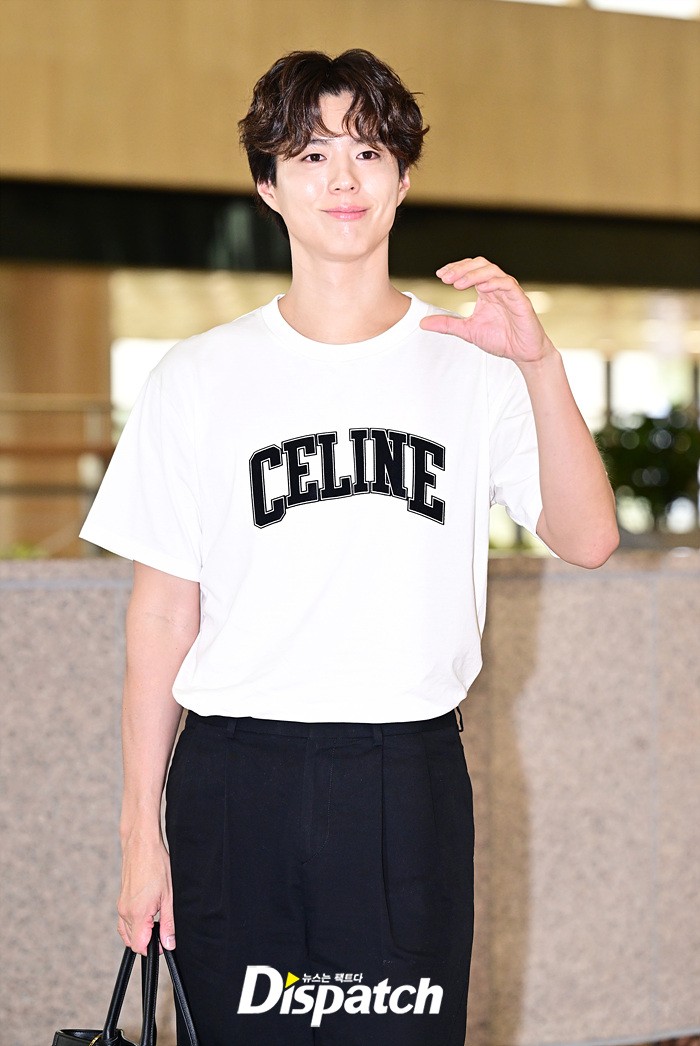 박보검은 블랙 앤 화이트 스타일로 심플한 공항패션을 완성했다. 훈훈한 비주얼과 스윗한 미소가 돋보였다.