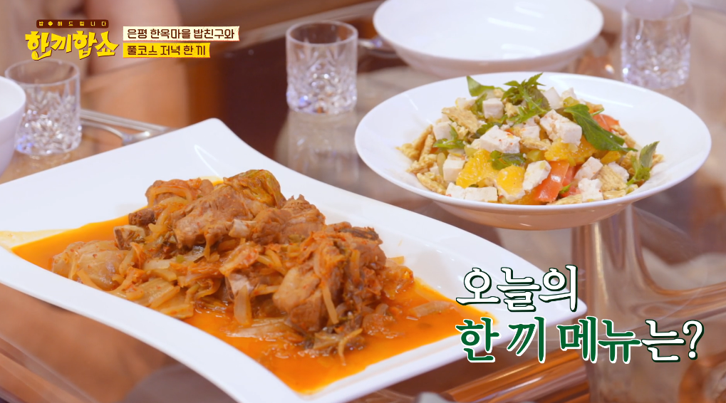 이날의 한끼 메뉴는 등갈비 묵은지 찜과 두부 샐러드, 냉장고의 가정식 반찬들이다. 디저트로는 블루베리 프렌치 토스트가 등장했다. 식욕을 자극하는 먹방이었다.