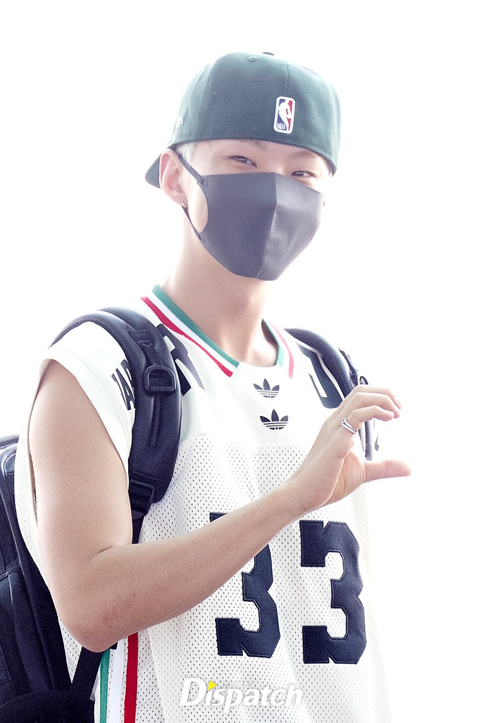 호시는 데님 팬츠에 민소매 셔츠로 시크한 공항패션을 연출했다. 훈훈한 비주얼이 돋보였다.