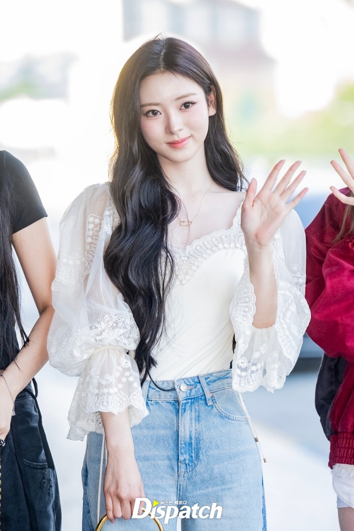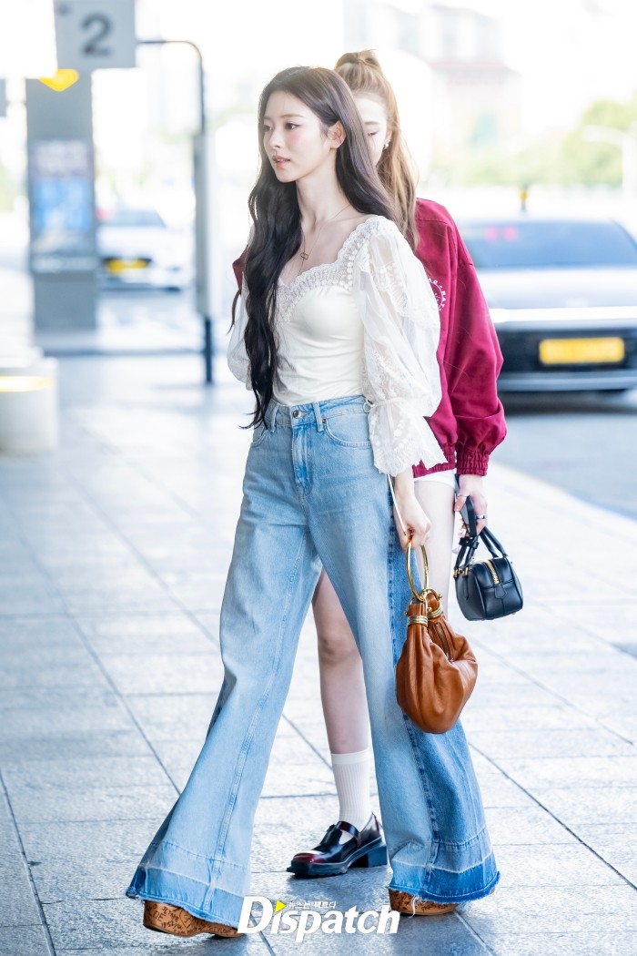 안나는 화이트 블라우스와 데님 팬츠로 공항 패션을 완성했다. 인형같은 미모가 시선을 사로잡았다.