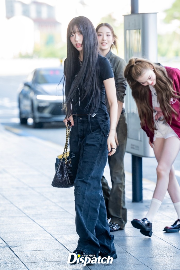 수인은 올블랙룩으로 시크한 공항 패션을 완성했다. 인형같은 미모가 시선을 사로잡았다.
