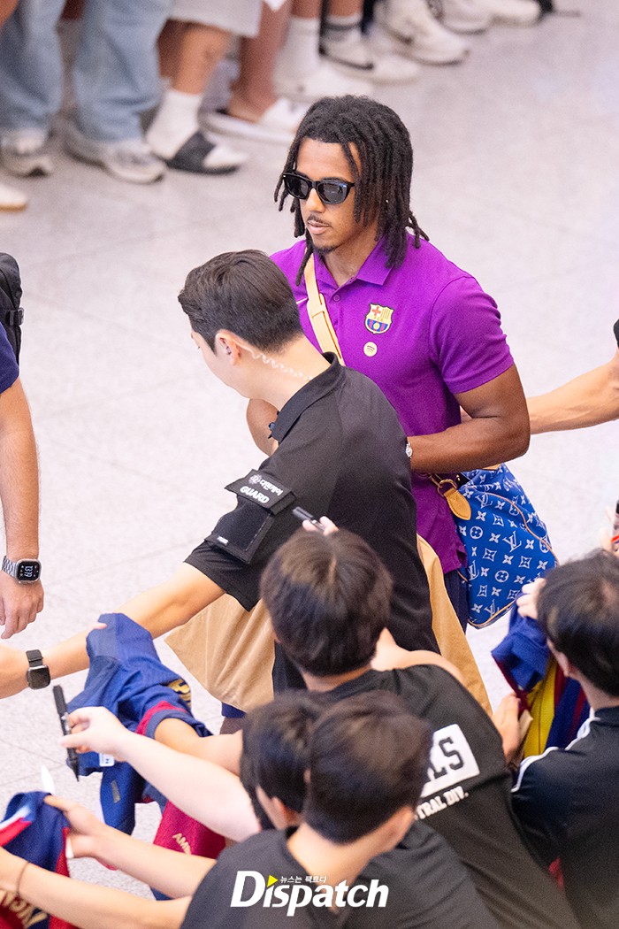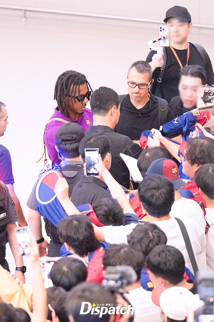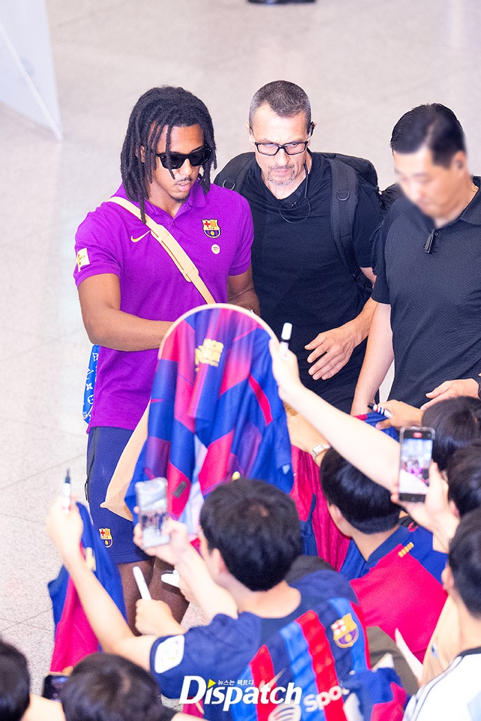 쥘 쿤데는 엄청난 환호와 함께 입국장에 들어섰다. 짧은 시간에도 팬들에게 일일이 사인을 해주는 등 남다른 팬서비스도 선보였다.