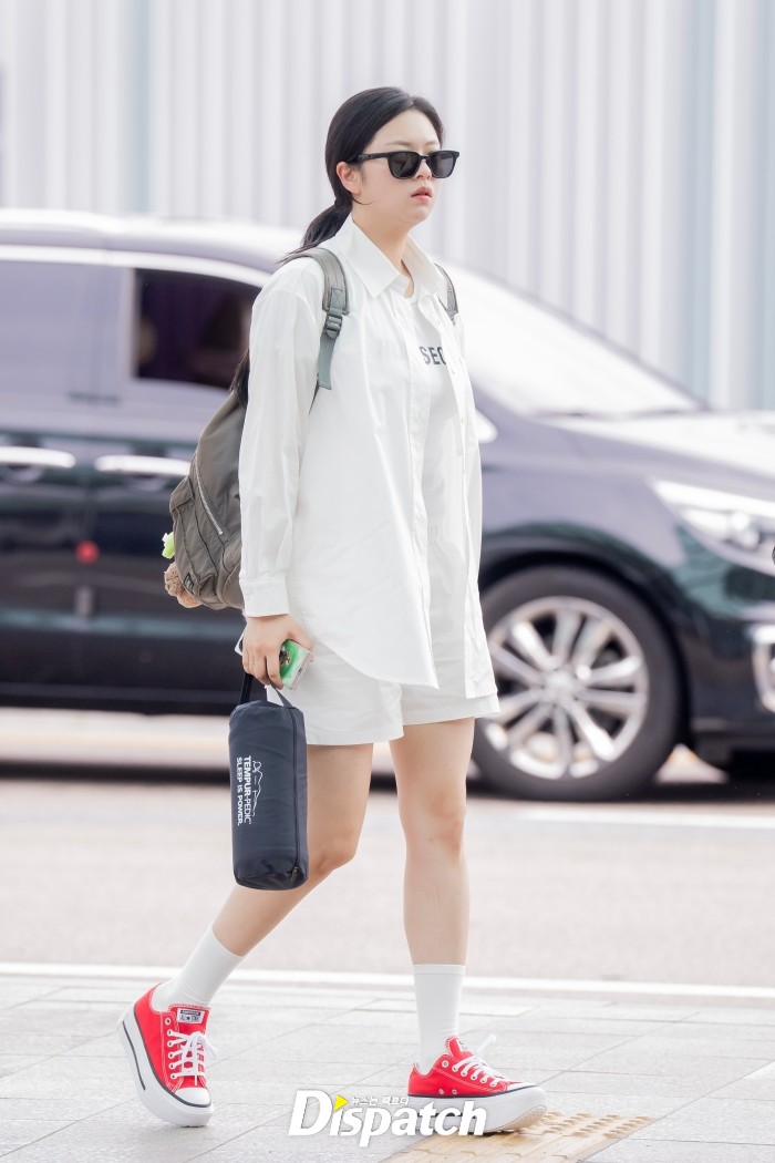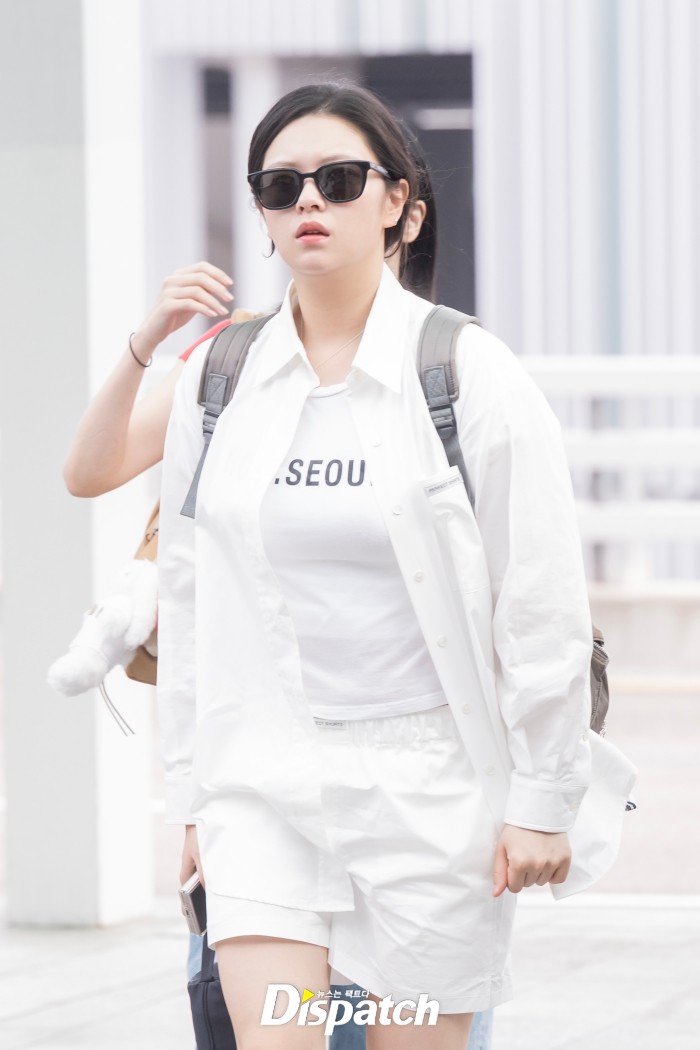 정연은 올화이트룩으로 화사한 공항패션을 완성했다. 아름다운 미모가 돋보였다.