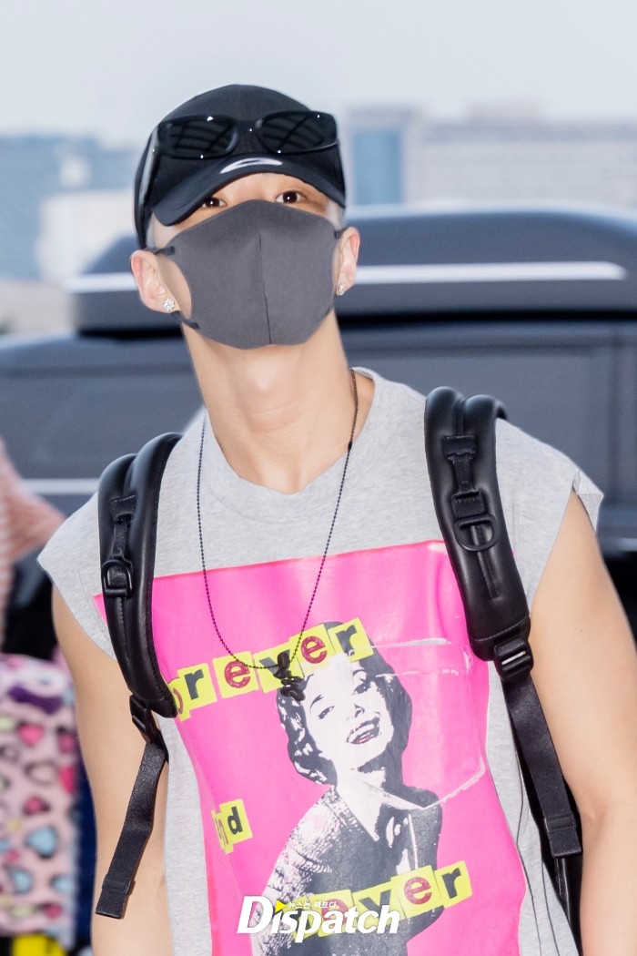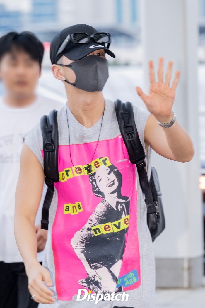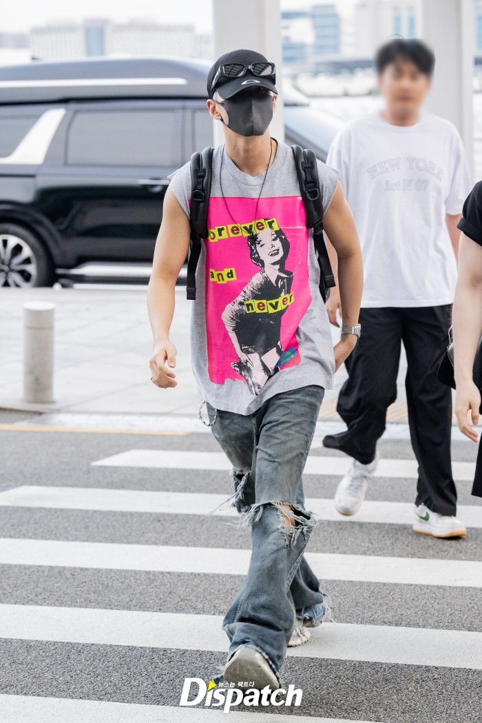 호시는 슬리브리스 티셔츠와 데님 팬츠로 공항패션을 완성했다. 힙한 스타일링이 시선을 사로잡았다.