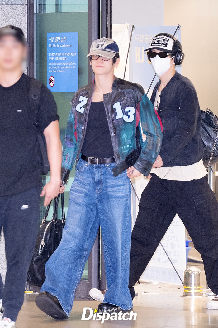 원빈은 데님 팬츠에 레더 재킷으로 시크한 공항패션을 연출했다. 훈훈한 비주얼이 돋보였다.