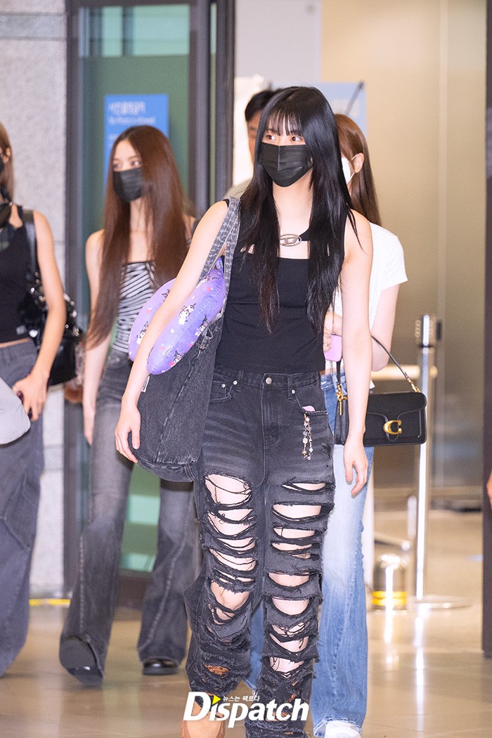 코코는 블랙 데님에 민소매 티셔츠로 시크한 공항패션을 연출했다. 인형같은 미모가 돋보였다.