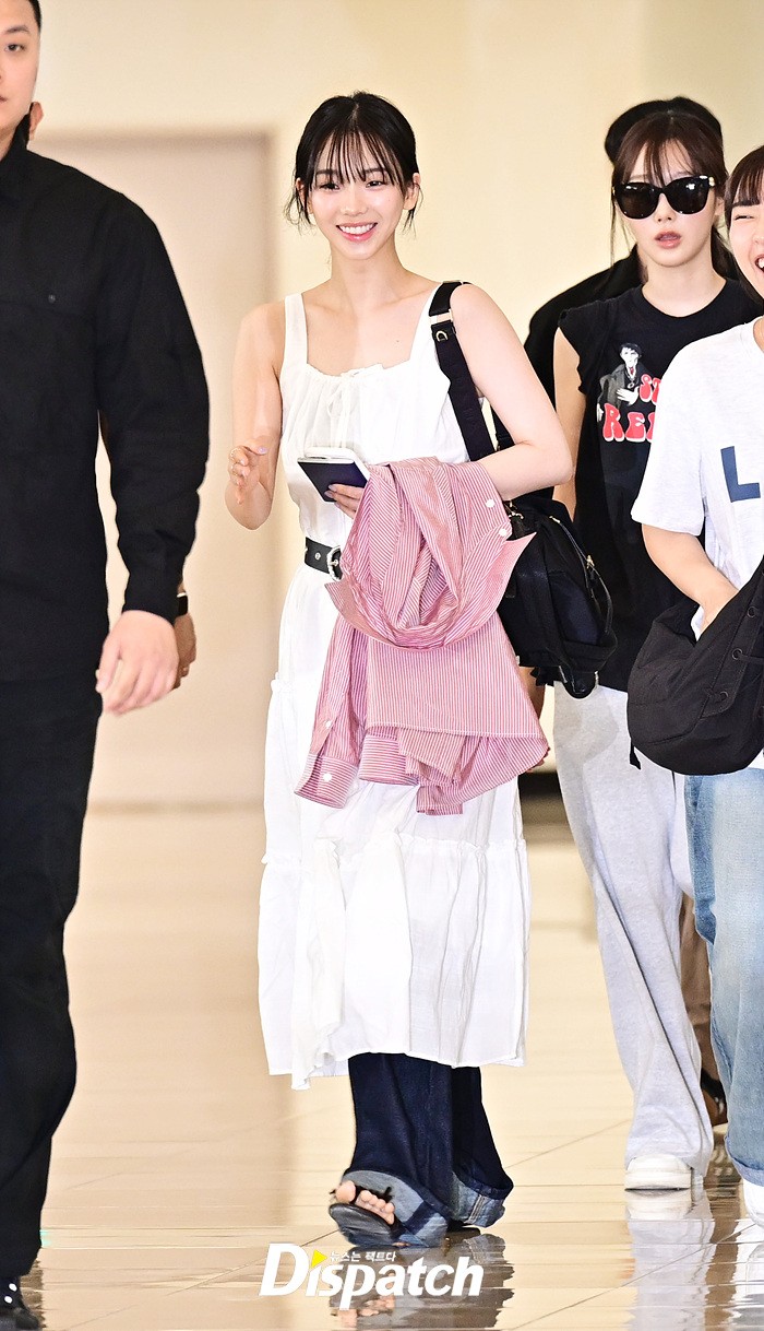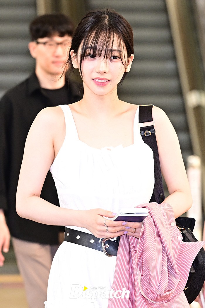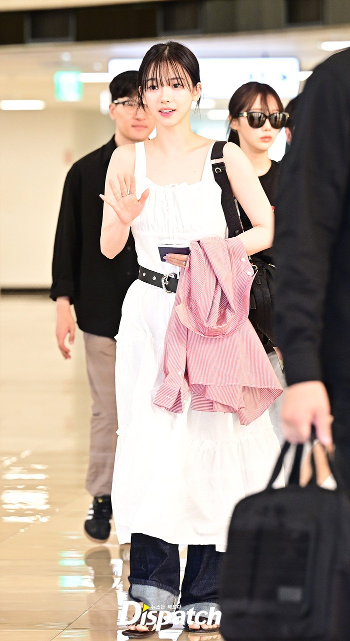카리나는 순백의 의상을 입고 눈부신 미모를 뽐냈다. 공항에 모인 팬들을 위해 환한 미소로 화답했다.