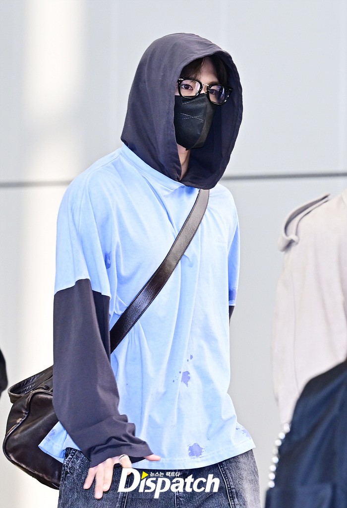 제노는 마스크에도 훈훈한 비주얼로 시선을 모았다. 뿔테 안경으로 연출한 세련된 스타일링도 돋보였다.