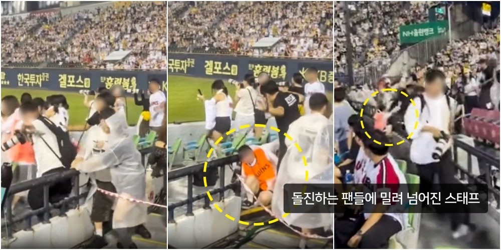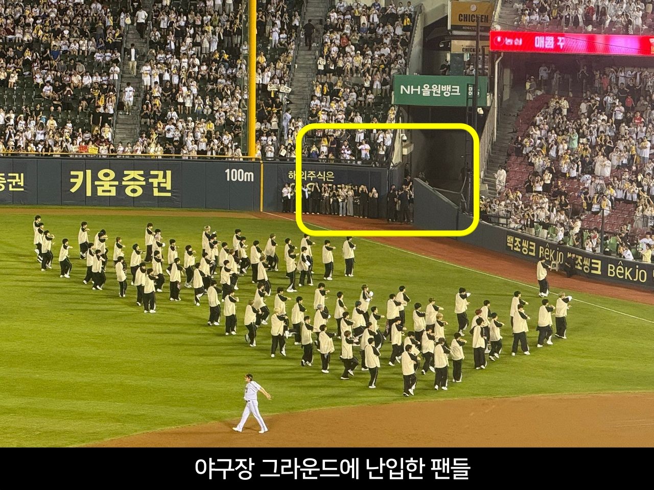 동시에, 눈을 의심케 하는 장면도 연출됐다. 1루 외야 펜스 쪽 그라운드 스태프 사이에 팬덤이 등장한 것. 악성 팬들은 촬영을 시도했다. 관객들의 만류에도 아랑곳하지 않았다.