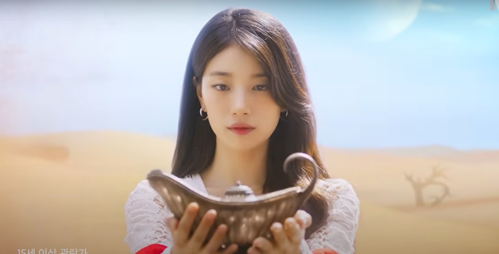 넷플릭스가 20일 '다 이루어질지니'의 티저 포스터와 영상을 공개했다. 수지(가영 역)는 사막을 배경으로 황금빛 램프를 들고 있었다. 김우빈(지니 역)은 진지한 얼굴로 곁을 지켰다.