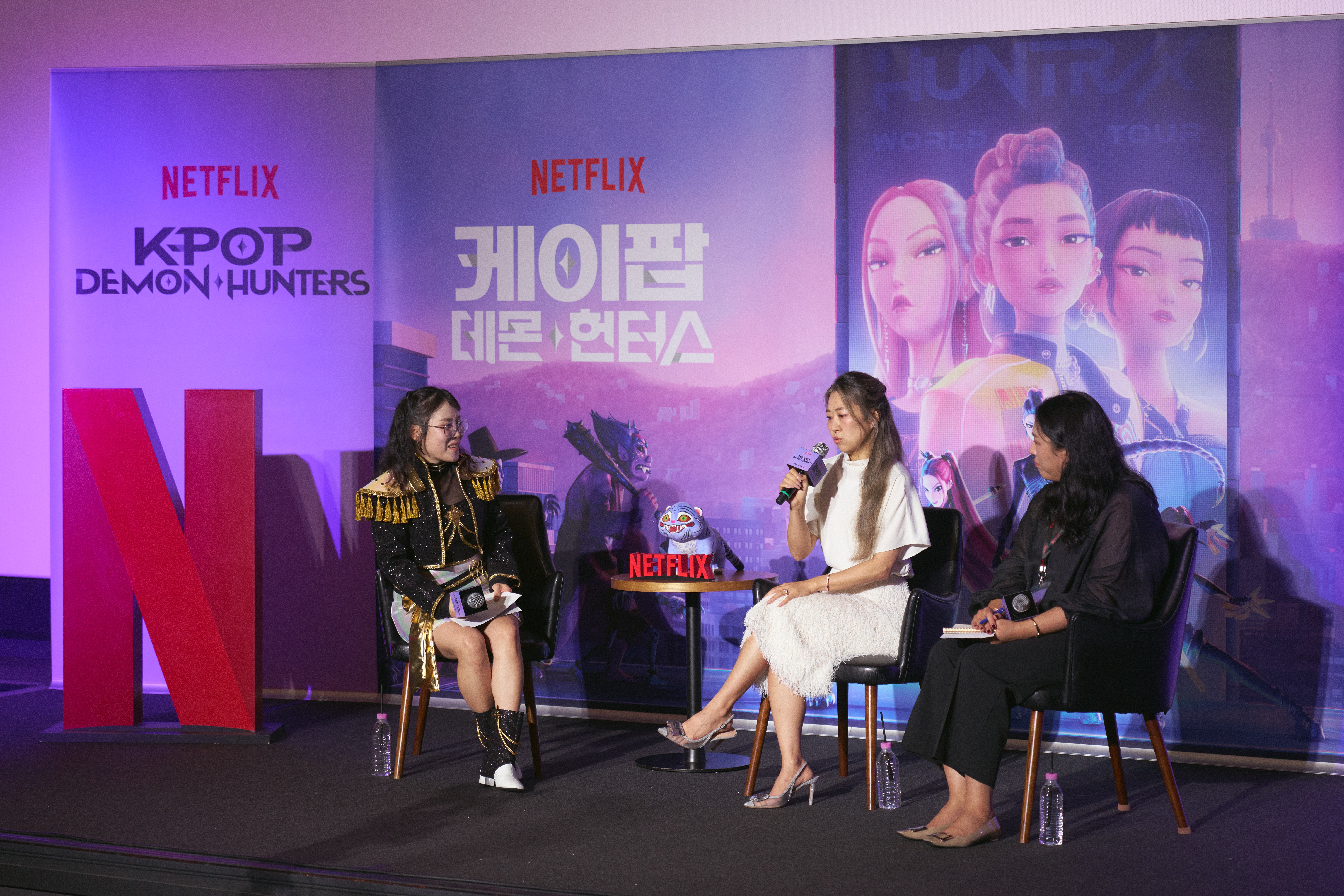 '케데헌'은 K팝 아이돌을 소재로 한 애니메이션이다. 걸그룹이자 퇴마사인 '헌트릭스'가 저승사자 보이그룹 '사자 보이즈'에 맞서는 이야기다. 강 감독은 K팝을 소재로 한 이유를 말했다.