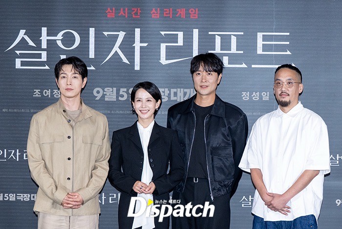 영화 '살인자 리포트'(감독 조영준) 측이 28일 서울 용산구 CGV 용산아이파크몰에서 언론시사회 및 기자간담회를 열었다. 배우 조여정, 정성일, 김태한, 조영준 감독이 자리했다.