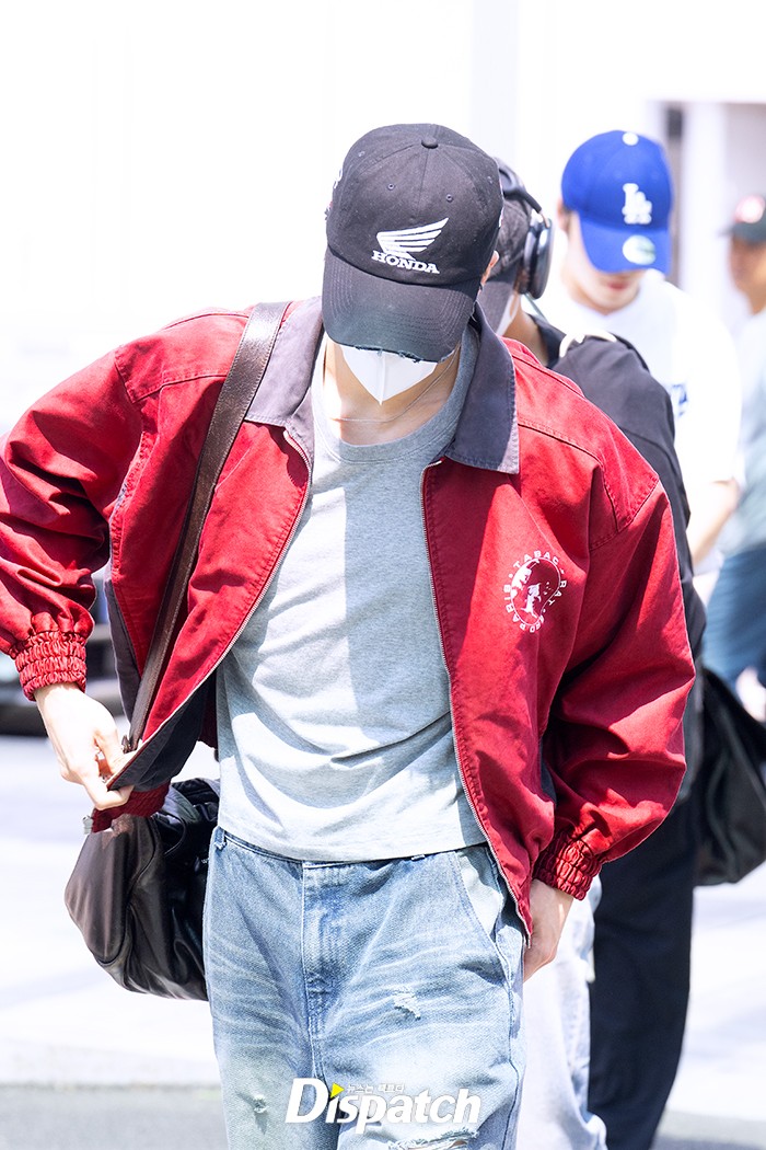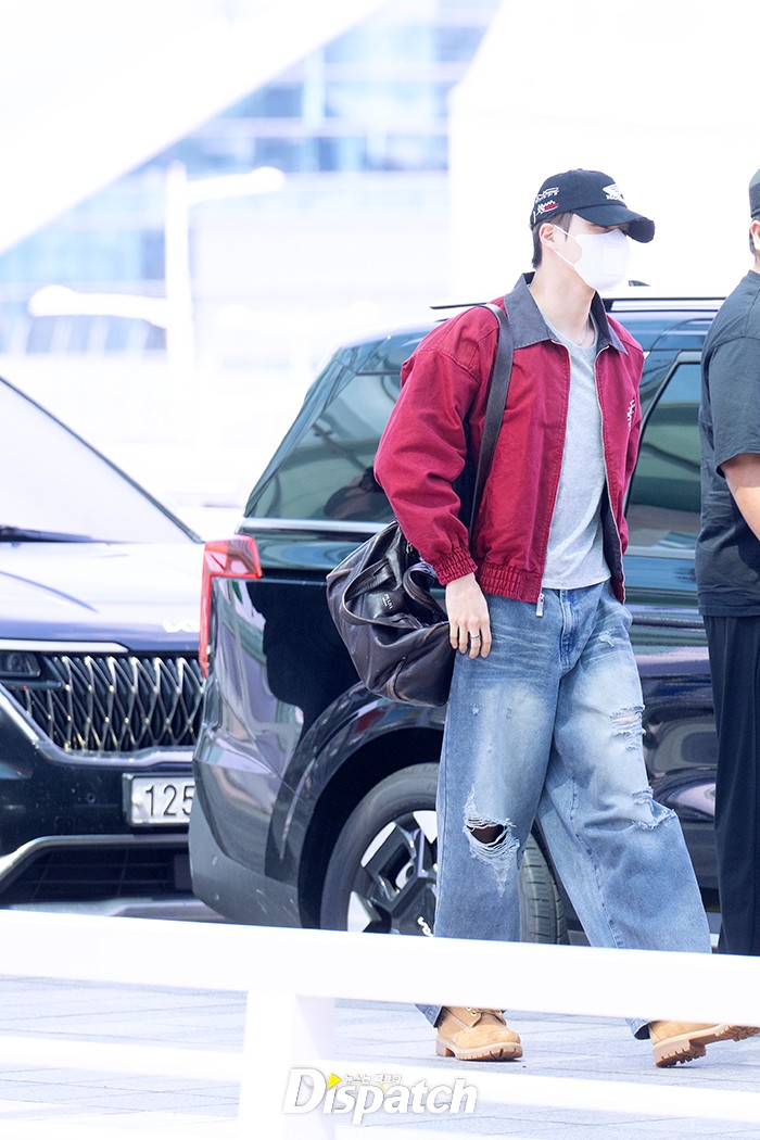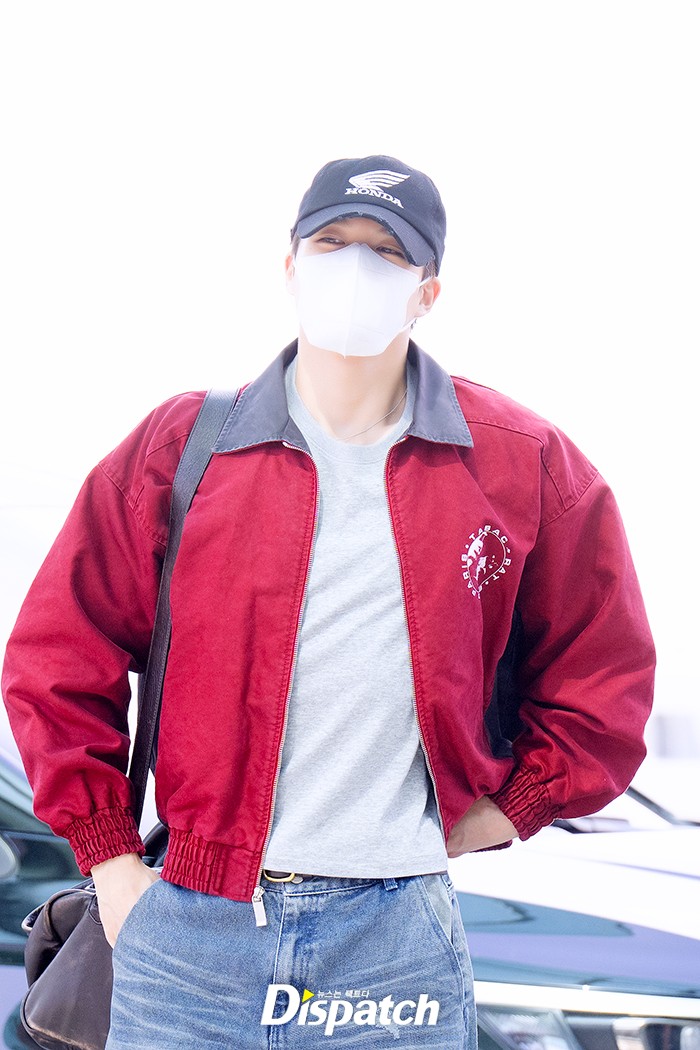 제노는 데님 팬츠에 레드 재킷을 매치해 수수한 공항패션을 연출했다. 훈훈한 비주얼이 돋보였다.