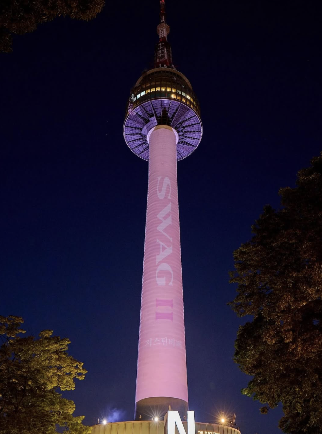 저스틴 비버는 4일 SNS에 세계 각국에 앨범 '스웨그 II'(SWAG 2)가 새겨진 모습을 공개했다. 서울 남산타워에도 그의 앨범명을 걸었다.