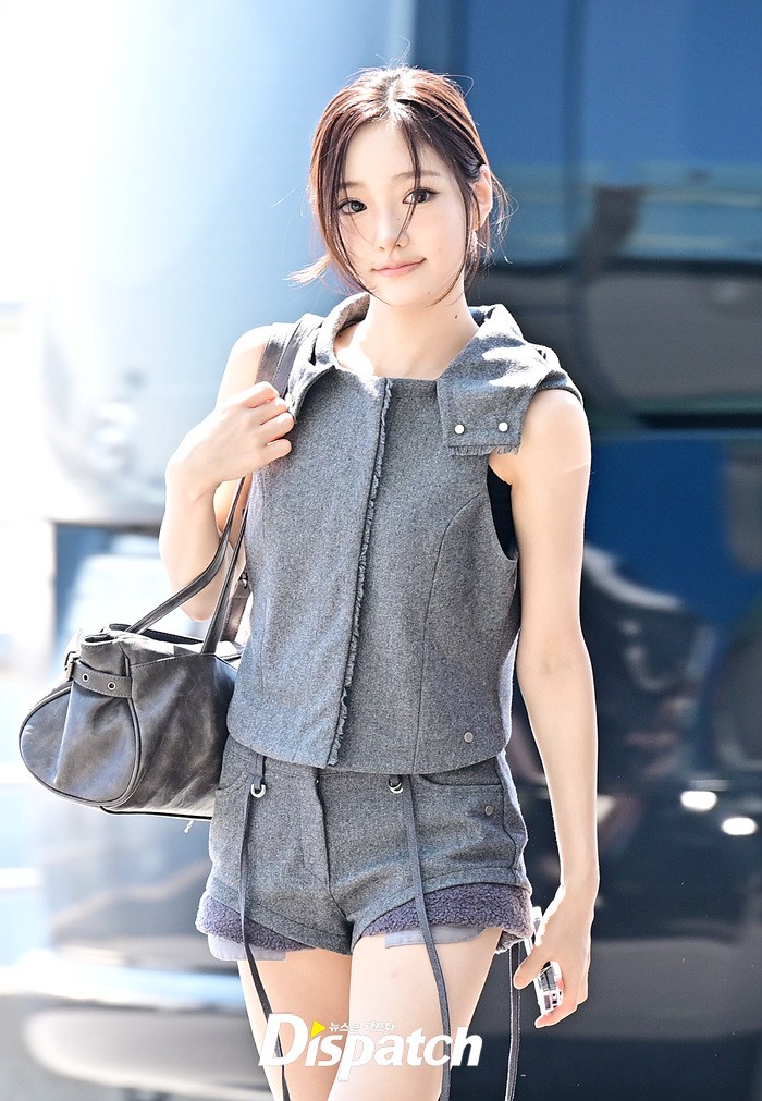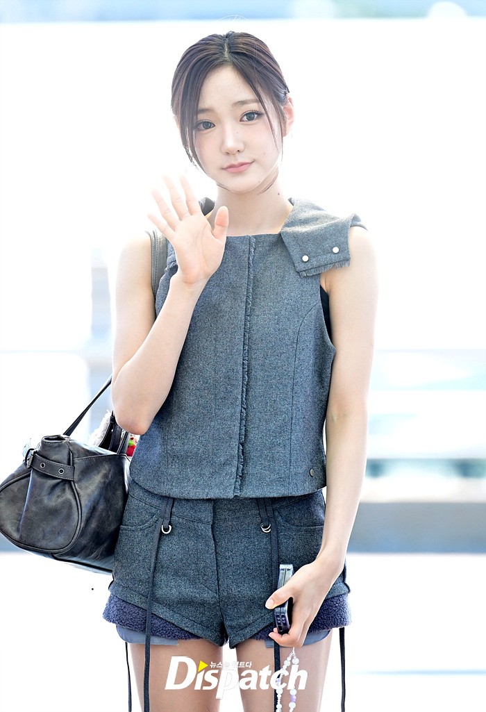 지유는 인형같은 이목구비로 눈길을 끌었다. 공항에 모인 팬들을 위해 환한 미소로 화답하는 모습이였다.