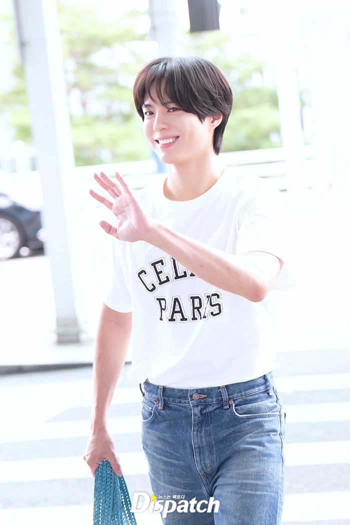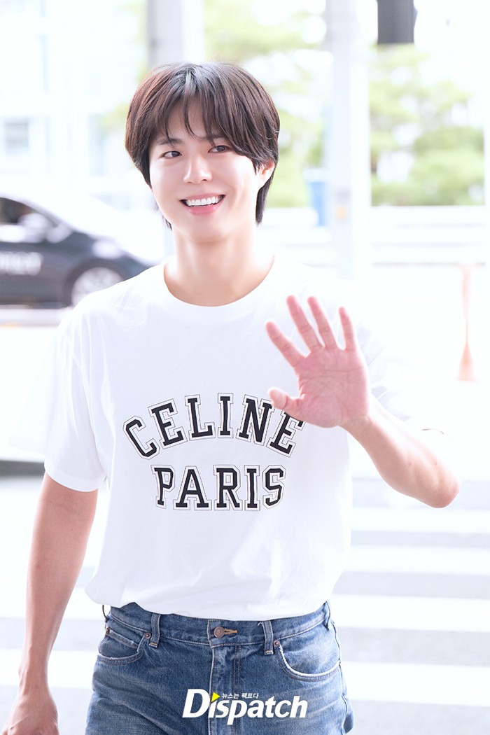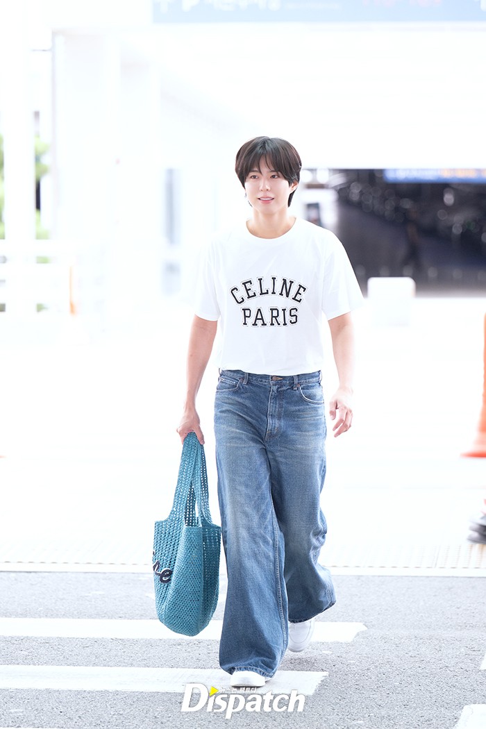 박보검은 데님 팬츠에 티셔츠로 심플한 공항패션을 연출했다. 훈훈한 비주얼이 돋보였다.