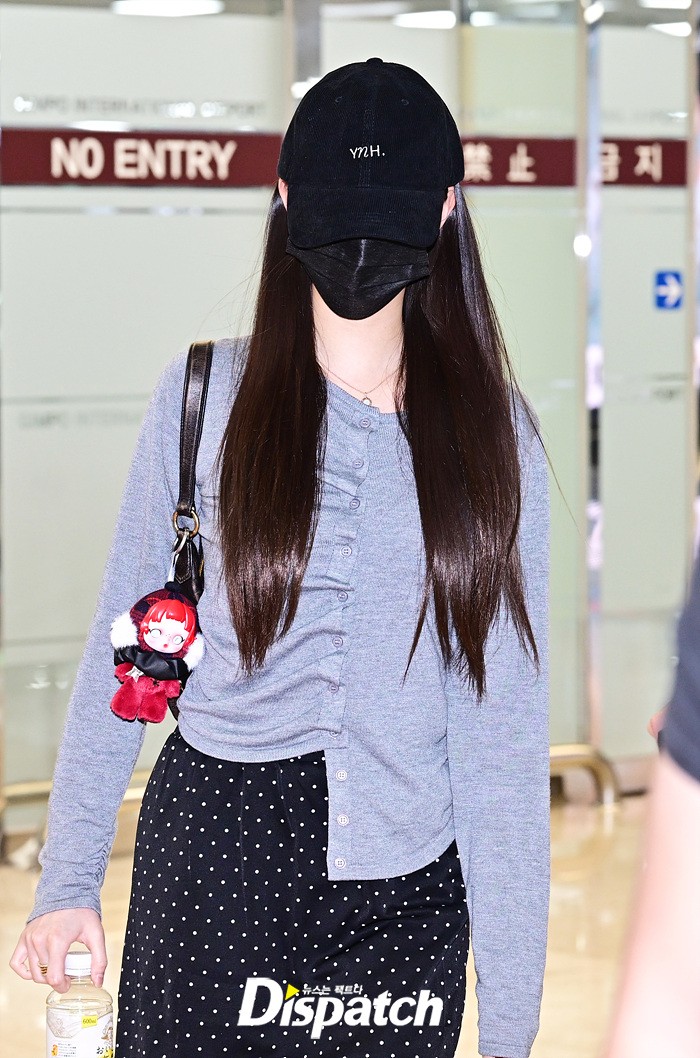 장원영은 그레이 컬러의 가디건과 롱 스커트로 심플한 공항패션을 완성했다. 모자와 마스크에도 독보적인 피지컬이 눈길을 끌었다.