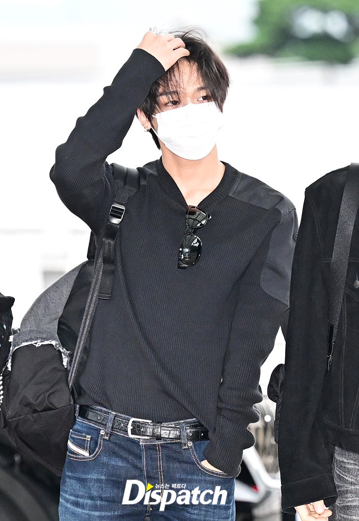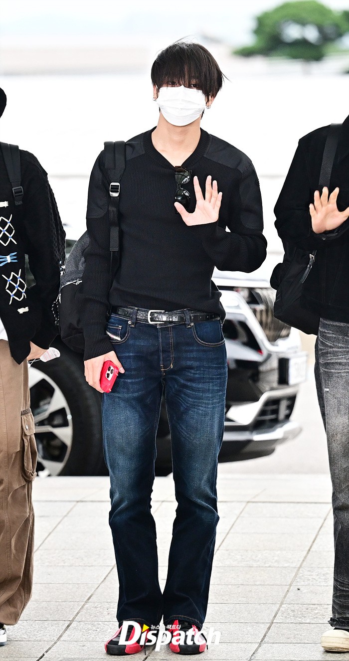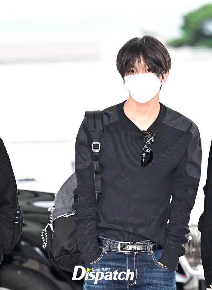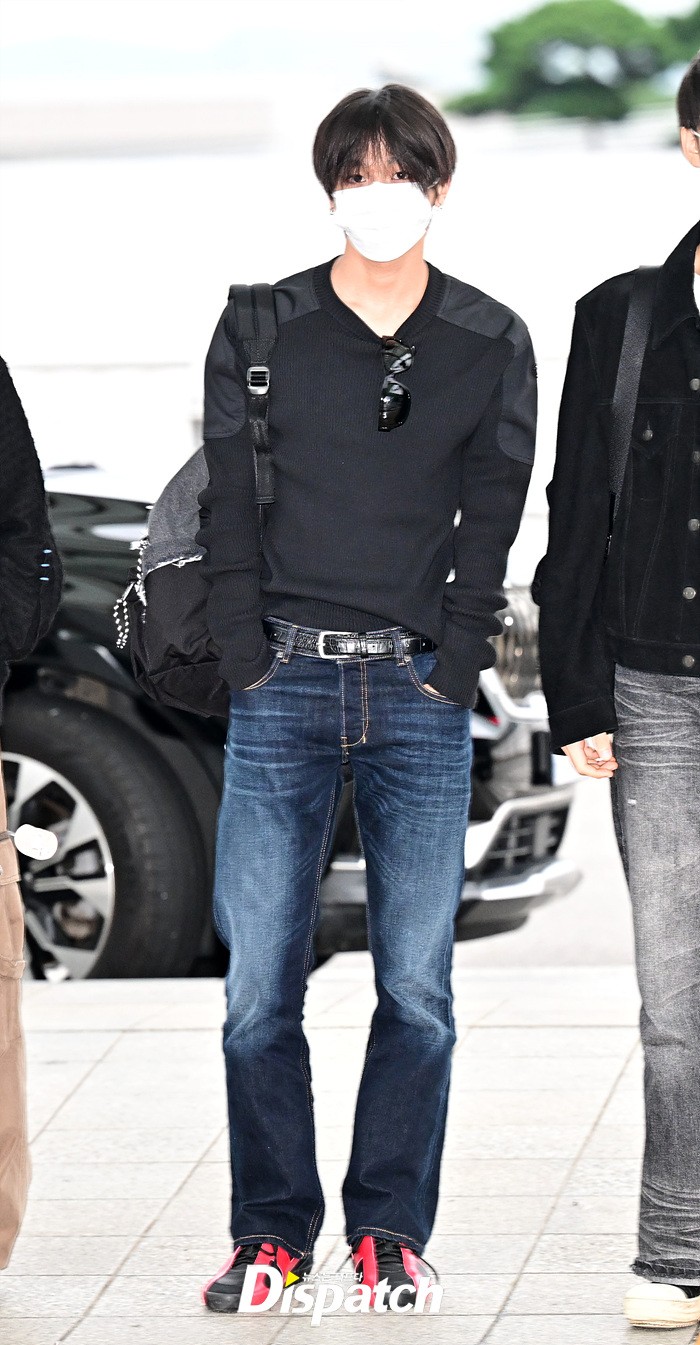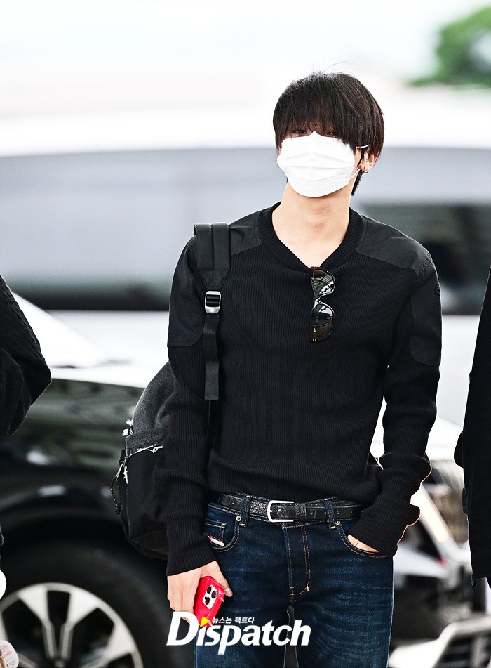 리쿠는 마스크에도 훈훈한 비주얼을 뽐냈다. 블랙 컬러의 티셔츠와 데님진으로 연출한 캐주얼한 공항패션도 돋보였다.