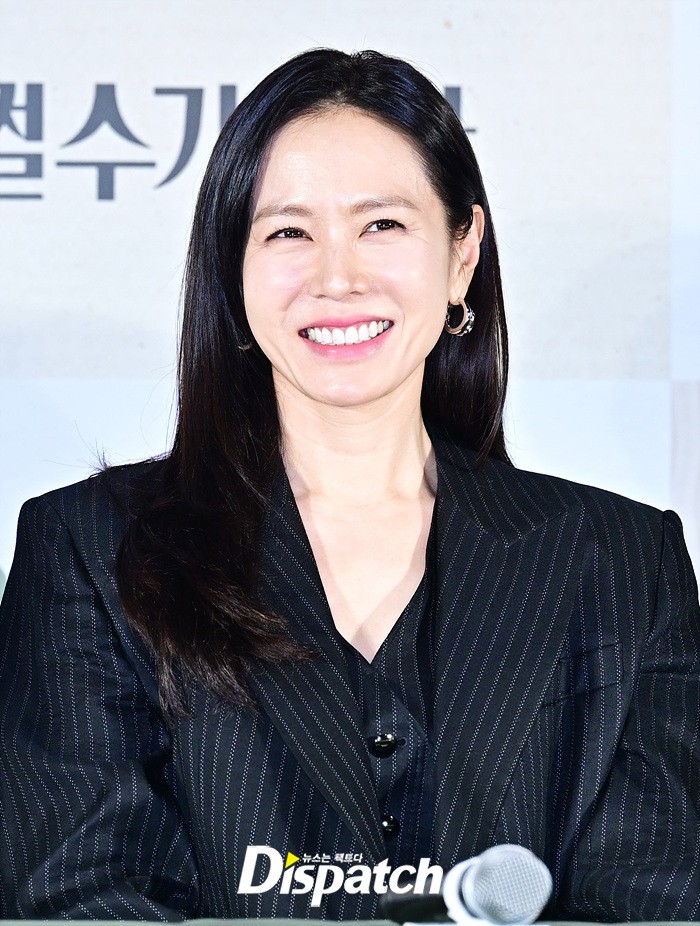 이날 기자간담회에 참석한 손예진은 여전한 청순한 비주얼로 시선을 모았다. 해맑은 눈웃음도 인상적이였다.