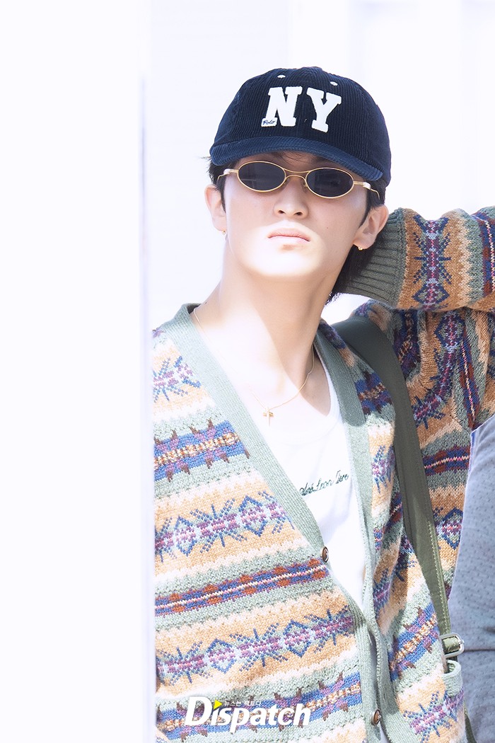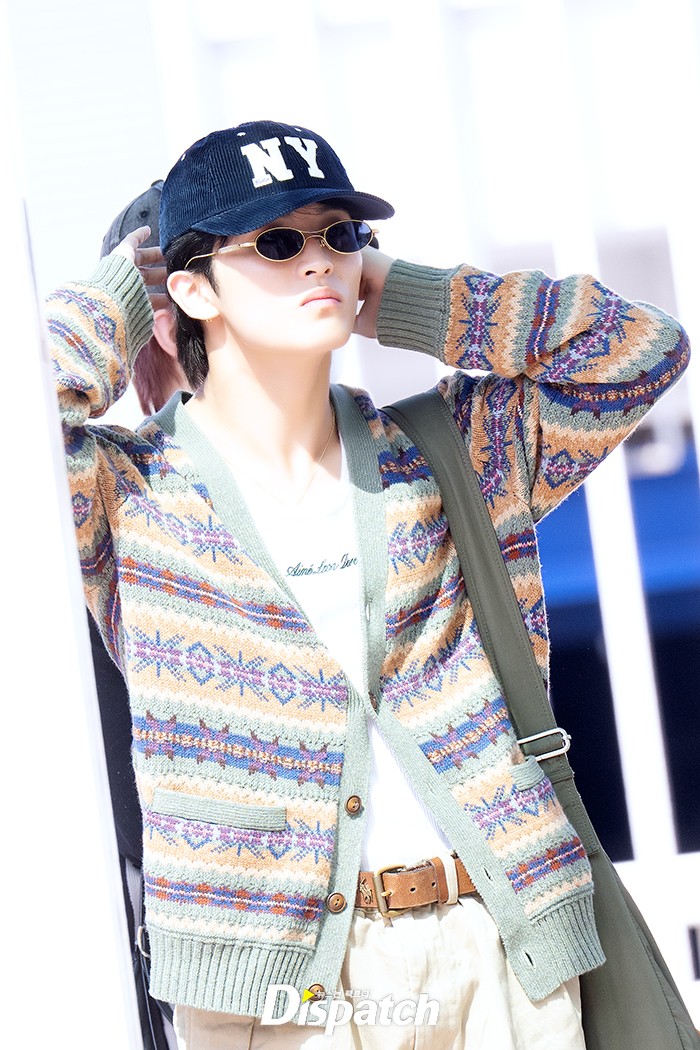 마크는 베이지 팬츠에 에스닉 가디건으로 멋을 냈다. 훈훈한 비주얼이 돋보였다.