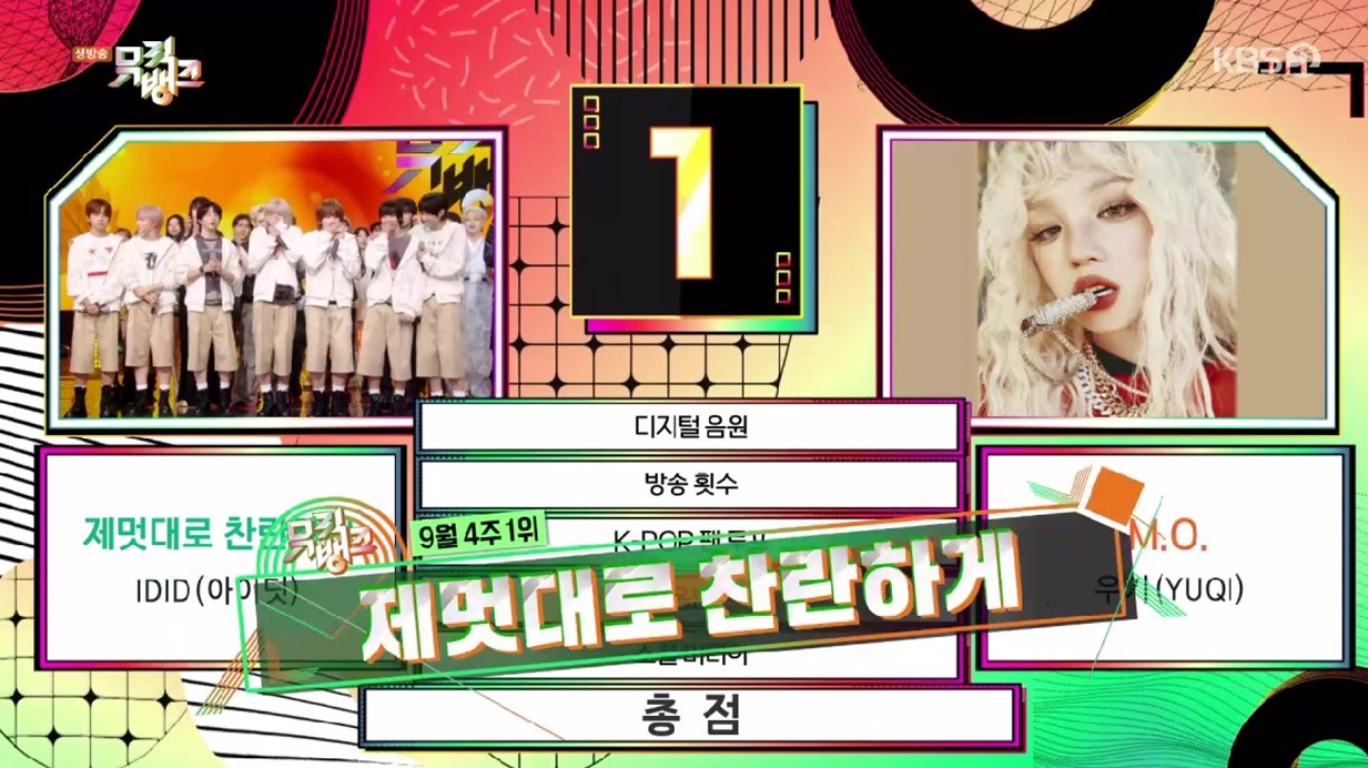 이 곡으로 9월 4주차 1위에 등극했다. 1위 후보 아이들 '우기'(M.O.)를 제치고 정상에 올랐다. 멤버들은 1위 수상이 믿기지 않는 듯 휘청거렸다.
