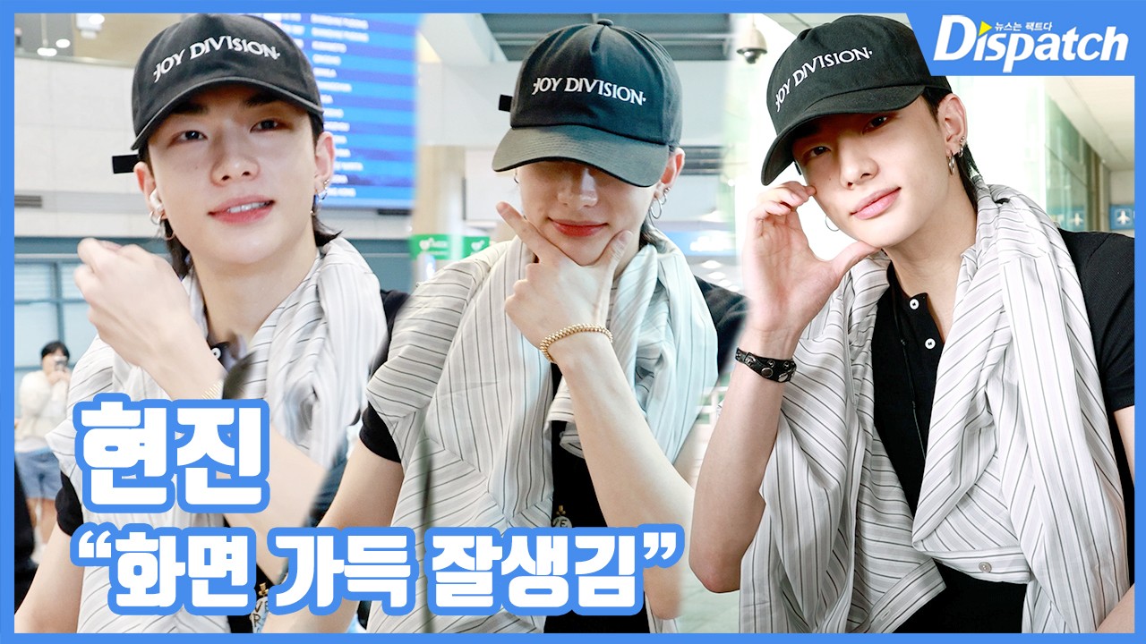 이날 현진은 장시간 비행에도 불구하고 훈훈한 바이브와 잘생긴 외모를 발산했다.