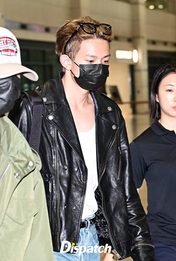 희승은 가죽재킷과 데님진으로 시크한 공항패션을 연출했다. 마스크에도 또렷한 이목구비가 눈길을 끌었다.