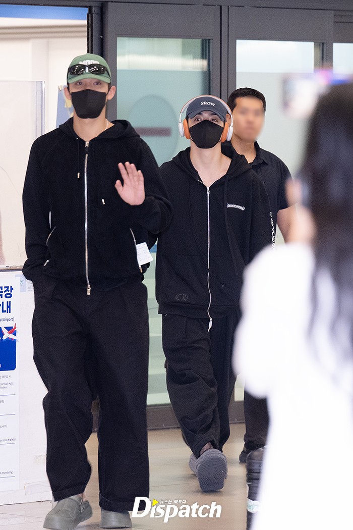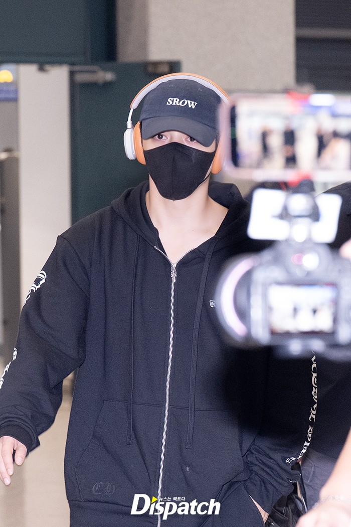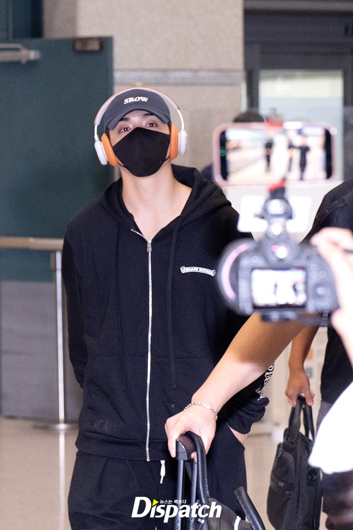 에스쿱스는 블랙 트레이닝룩으로 수수한 공항패션을 연출했다. 우월한 비율이 돋보였다.