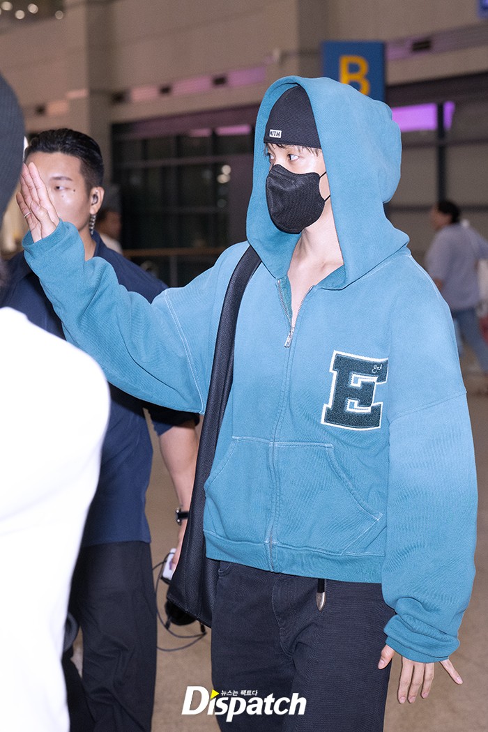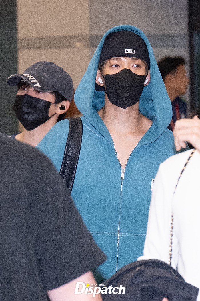 도겸은 데님 팬츠에 후드 셔츠로 댄디한 공항패션을 연출했다. 훈훈한 비주얼이 돋보였다.