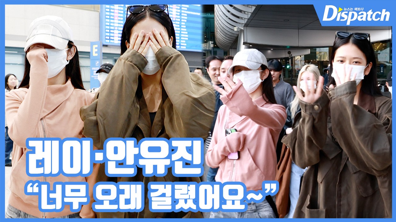 이날 레이와 안유진은 취재진에게 장시간 비행에 "너무 오래 걸렸어요"라며 울먹이는 제스처를 선보여 귀여운 매력을 뽐냈다.
