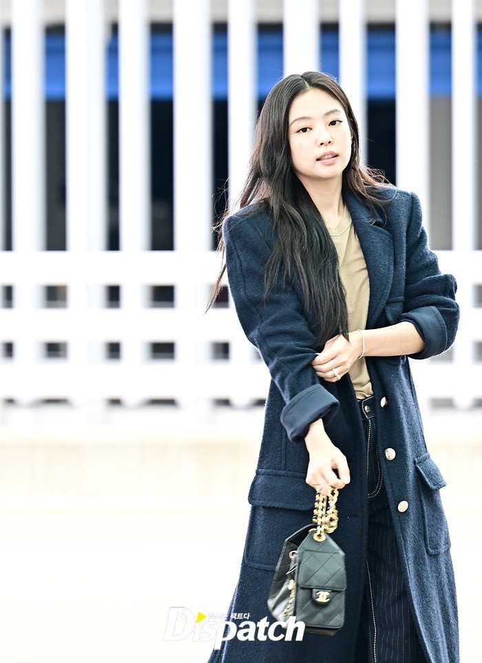 제니는 네이비 컬러의 롱코트로 가을 패션의 정석을 선보였다. 러블리한 비주얼과 해맑은 미소도 돋보였다.