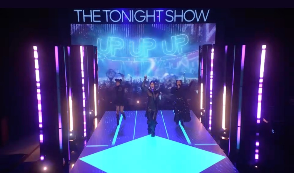 지미 팰런은 "넘버원 히트송 무대를 펼친다"고 소개했다. 관객들은 뜨거운 박수로 맞았다. 세 사람은 극중 가상 걸그룹 '헌트릭스' 앞에서 노래했다.