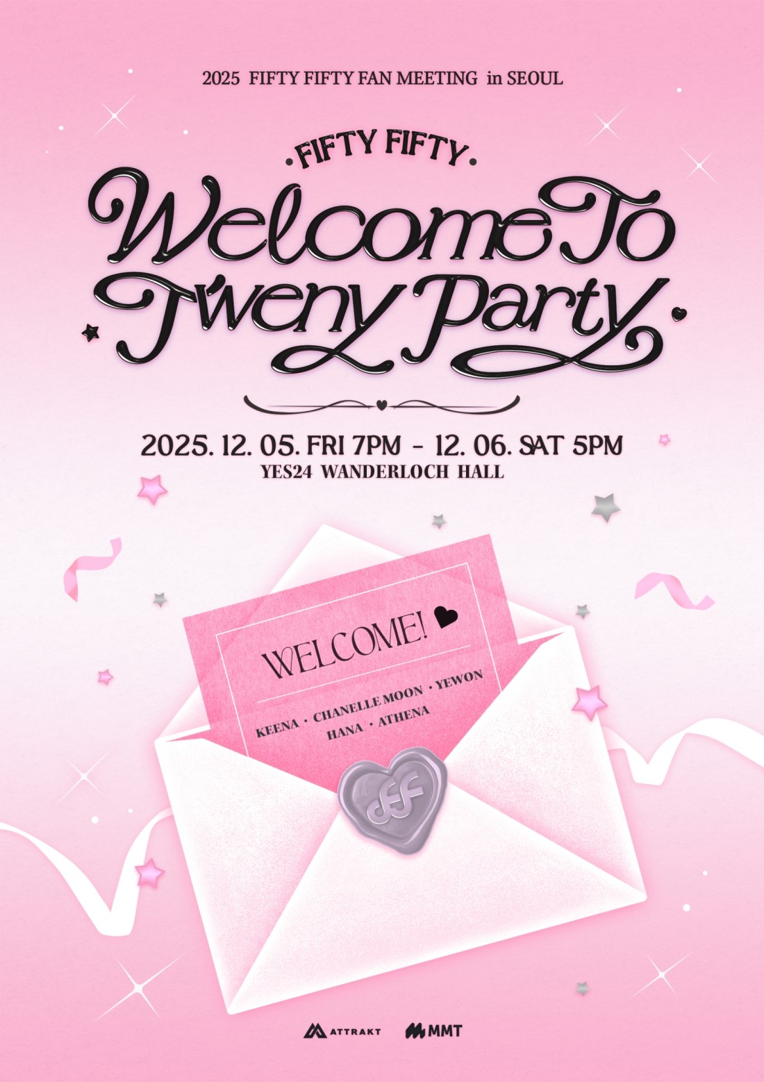 '피프티피프티'는 오는 12월 5~6일 공식 팬미팅 '피프티 피프티 : 웰컴 투 트웨니 파티'를 연다. 서울 예스24 워더로크홀에서 진행된다.