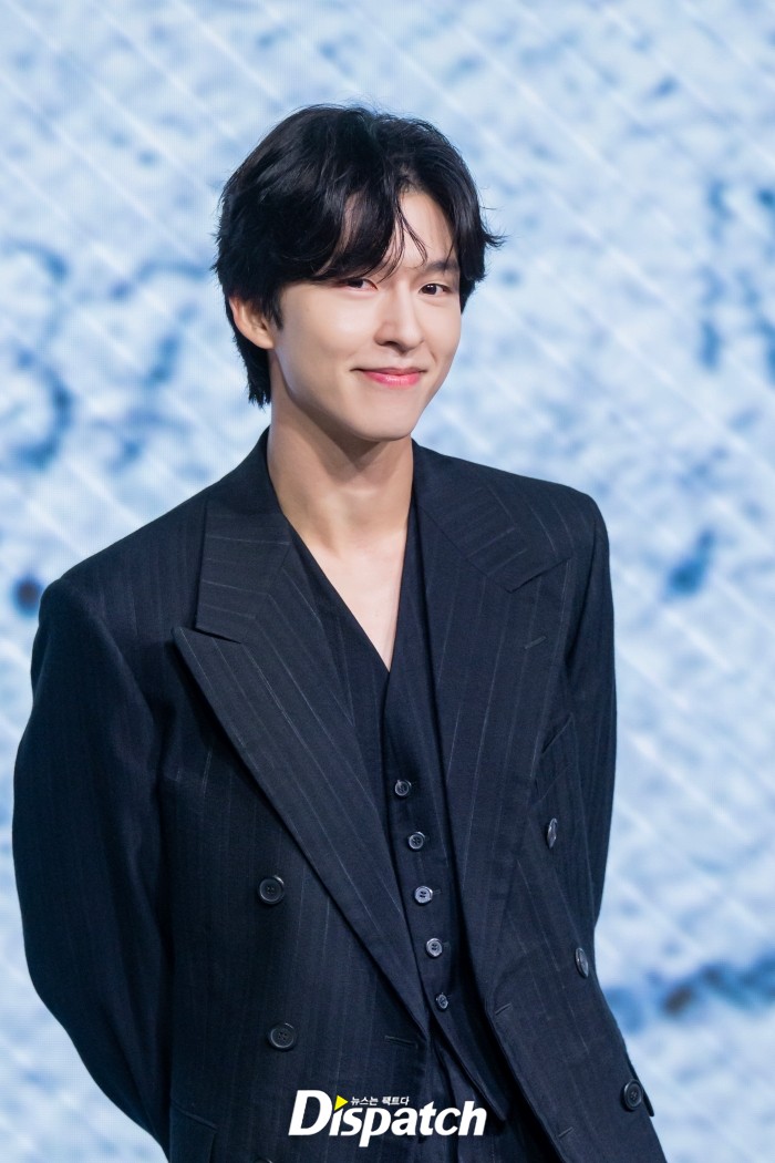 홍경은 올블랙 스트라이프 수트로 멋을 냈다. 잘생긴 비주얼이 시선을 사로잡았다.